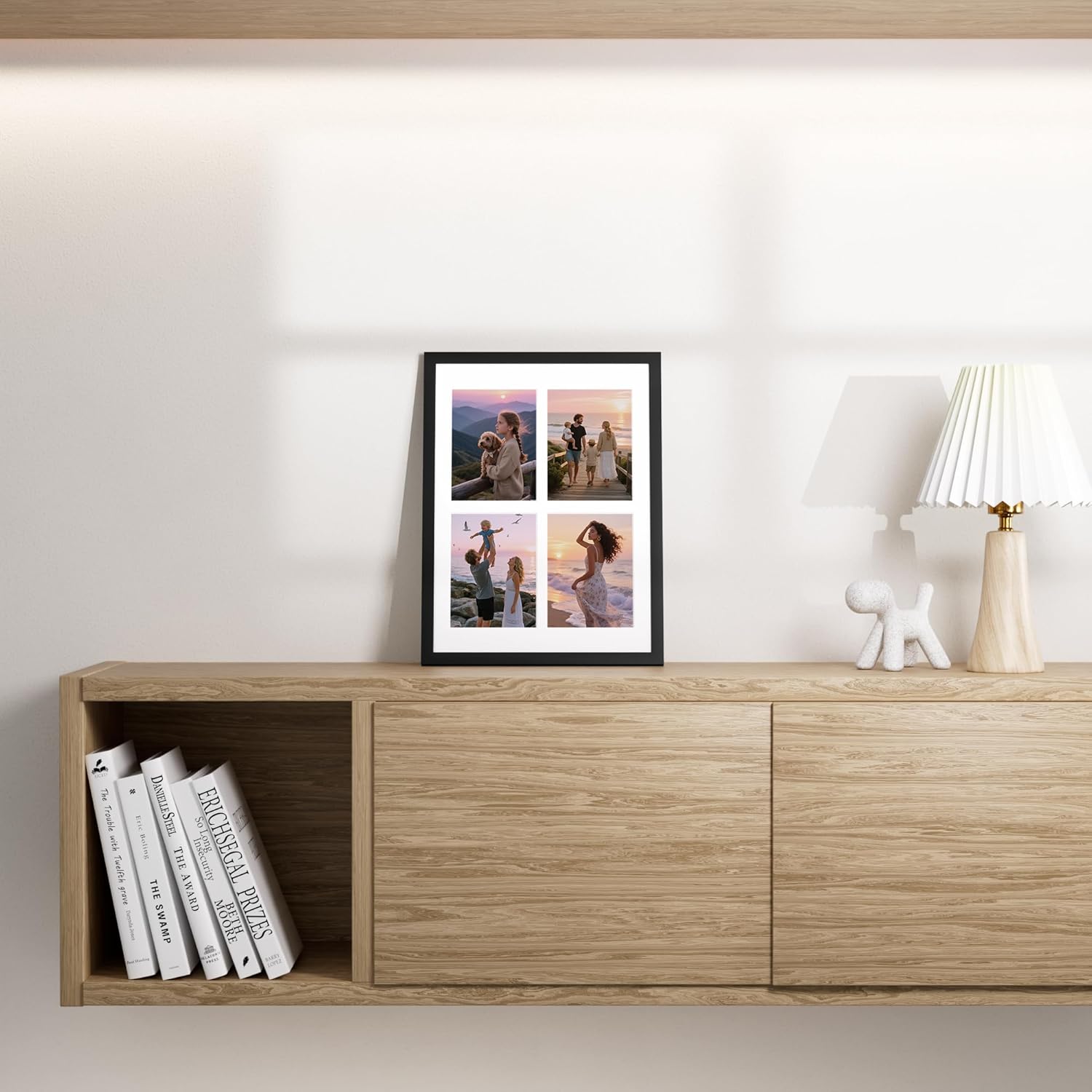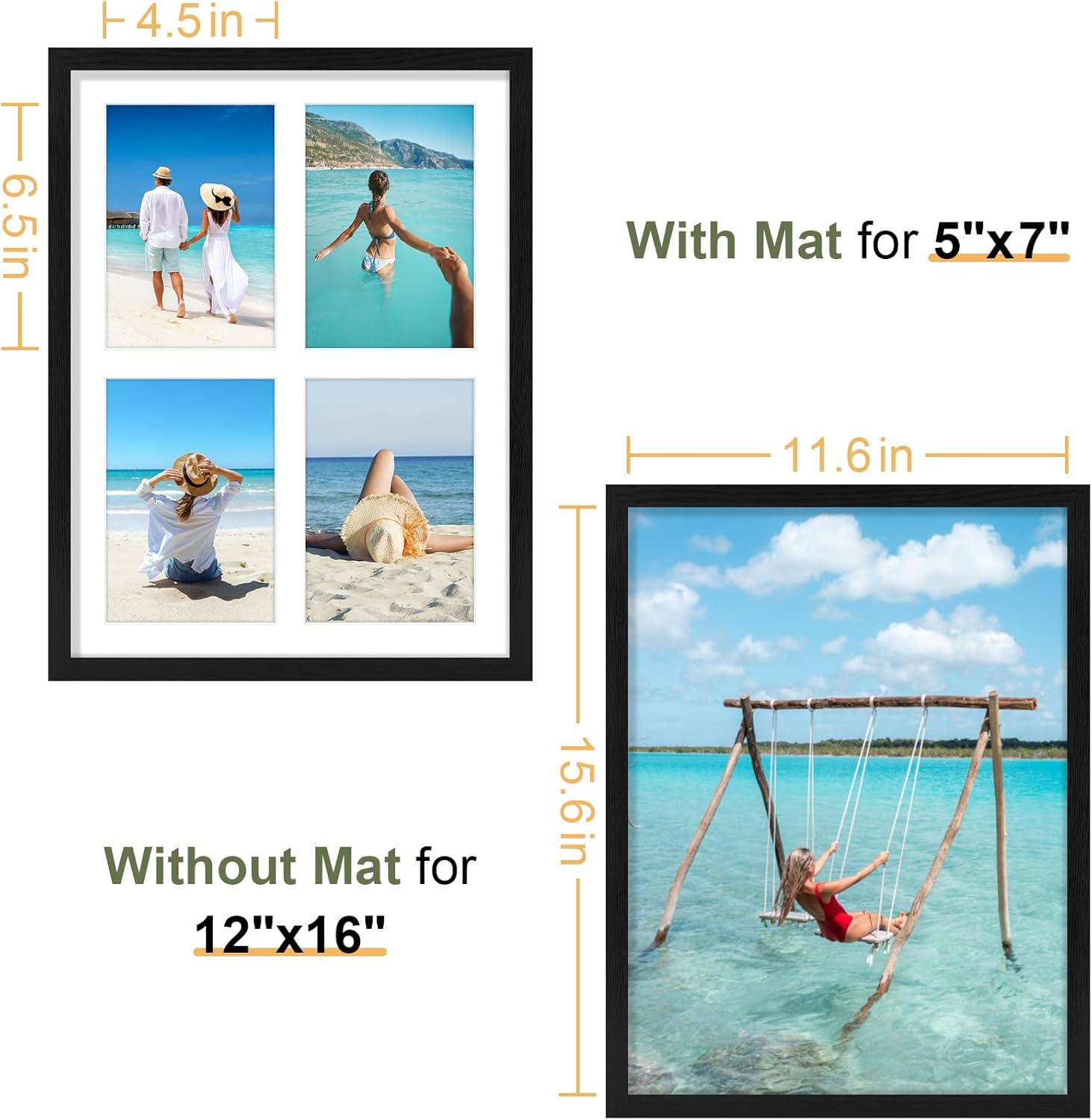 Vittanly 12x16 Collage Picture Frame, Displays 4Pcs 5x7 Pictures with Mat, Picture Frames Collage Wall Decor for Horizontal or Vertical Display, Black, 1 Pack