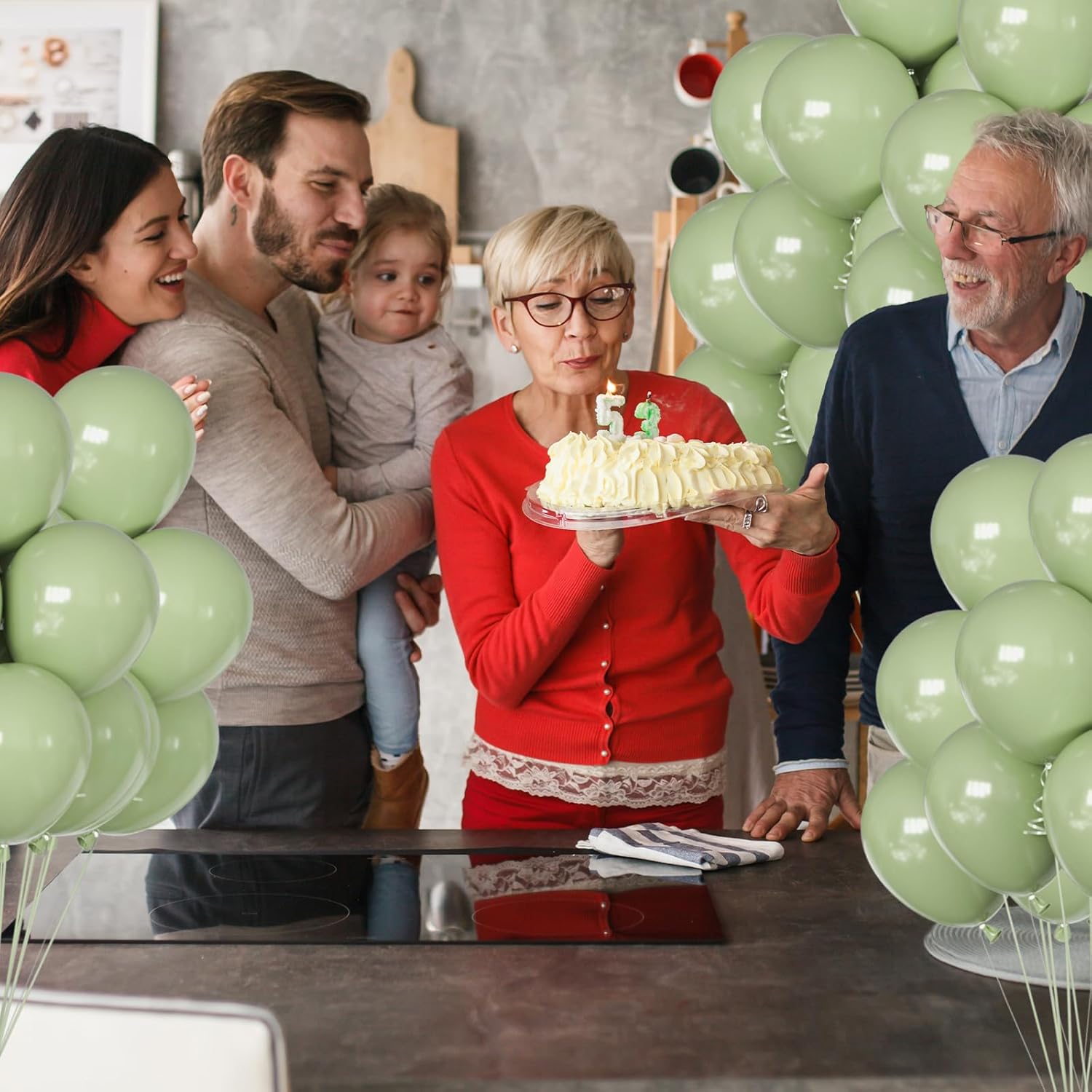 - 🎈 Complete Boho Decor Kit : Everything you need in one box: 100 high-quality sage green latex balloons and 66 feet of matching ribbon. Perfect for creating stunning balloon arches, garlands, clusters, and photo backdrops without any extra purchases.