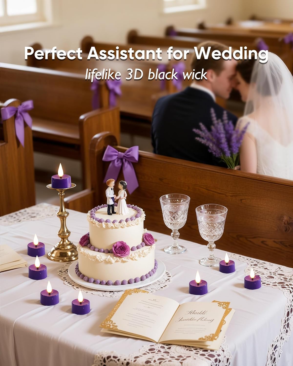 Amagic Flameless Purple Timer Remote Tealights Candles, 3D Black Wick Flickering Tea Light, 400+Hour Colored Votive Candles Battery Operated, Set of 12 for Party, Wedding Table, Halloween, Mardi Gras
