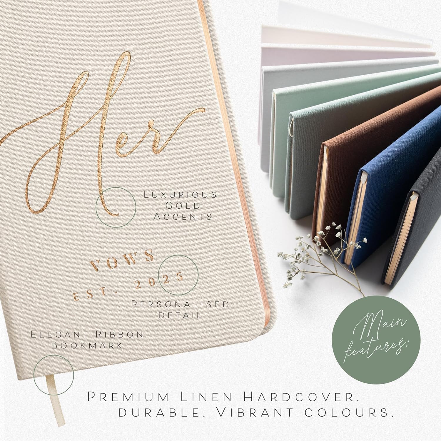 - LUXURIOUS WEDDING ESSENTIALS GOLD ACCENTS: All his her vows books feature gold-foiled “His” and “Her” engravings on the covers, and elegant gold-gilded page edges for a refined and sophisticated finish.