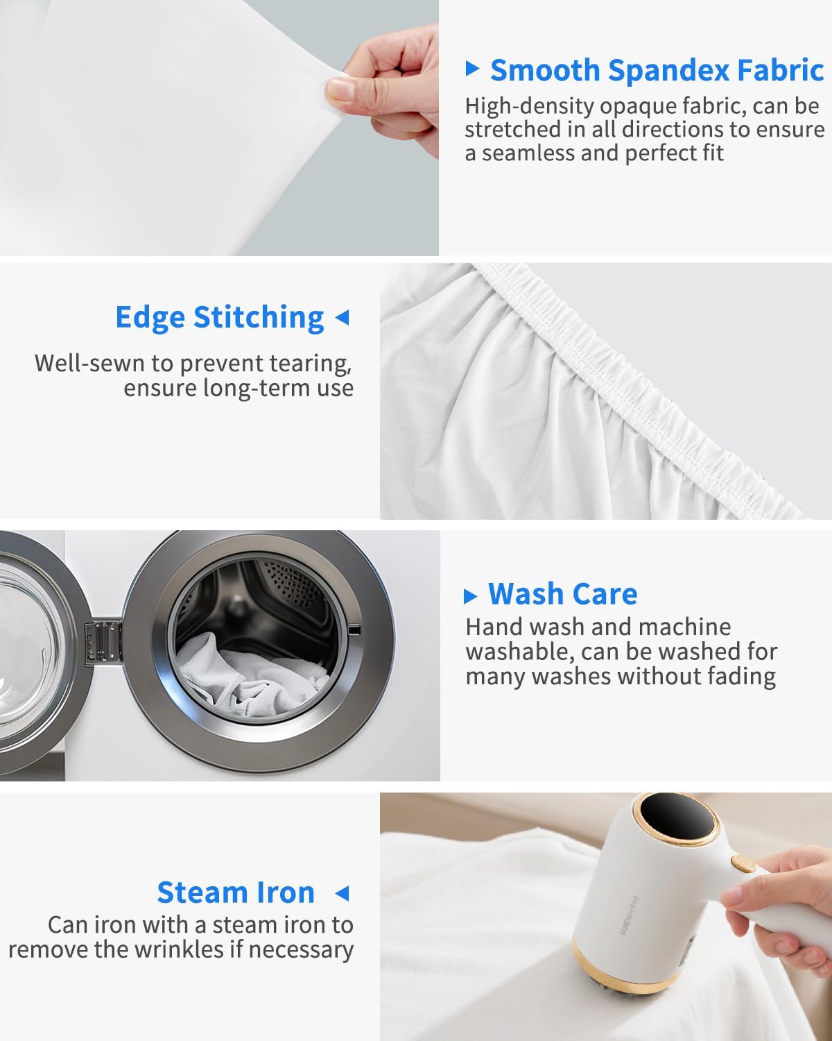 - Material: White stretchy spandex fabric ensures a smooth, wrinkle-resistant surface while being easy to install and maintain