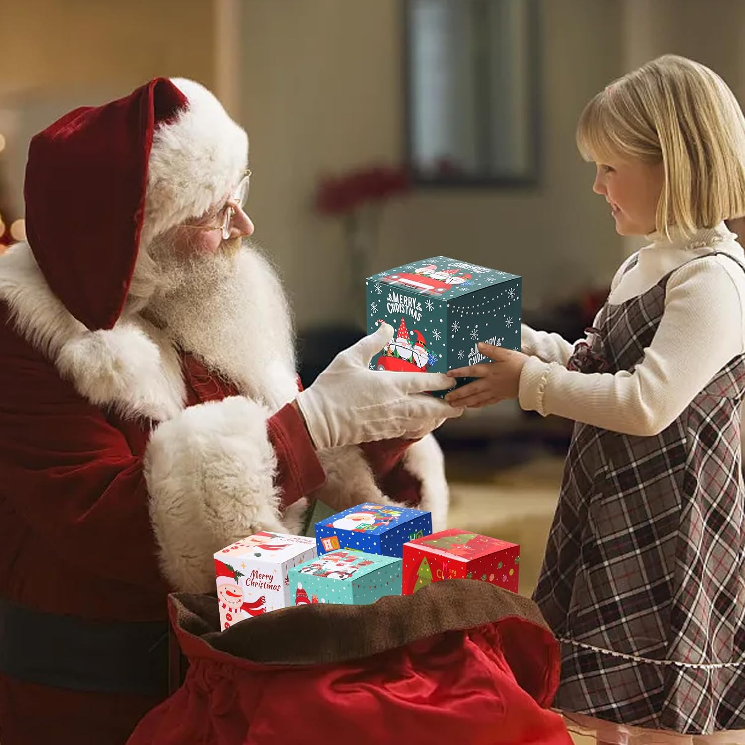 COTOPHER 20 Pcs Christmas Gift Boxes, 5" x 5" x 5" Xmas Candy Boxes for Gift Giving, Paper Treat Ornament Gift Box Decorative Christmas Goodie Box for School Home Holiday Party Favors Supplies