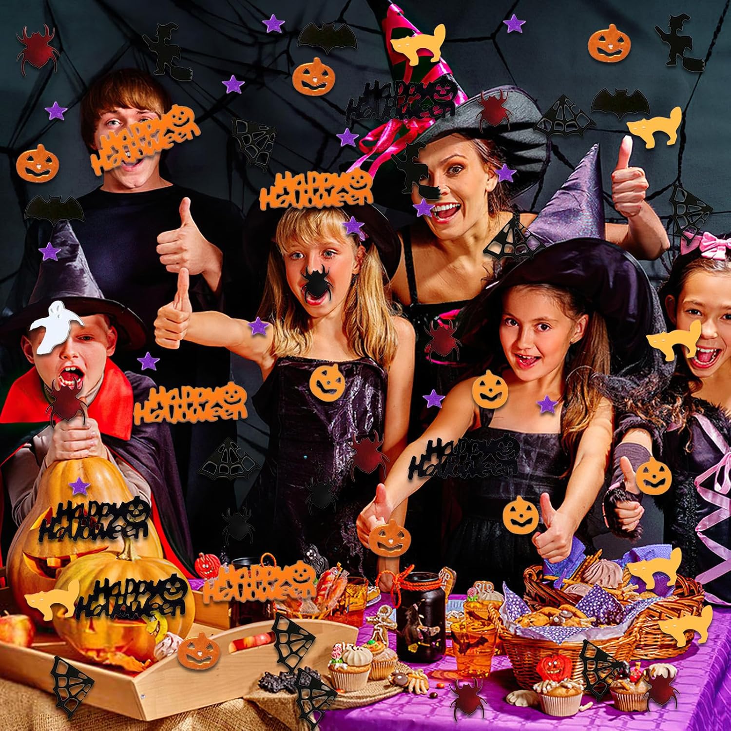 Halloween Party Table Scatter Confetti, 3000 Pcs Pumpkin Spider Webs Bat Foil Metallic Confetti for Halloween Party Table Decorations