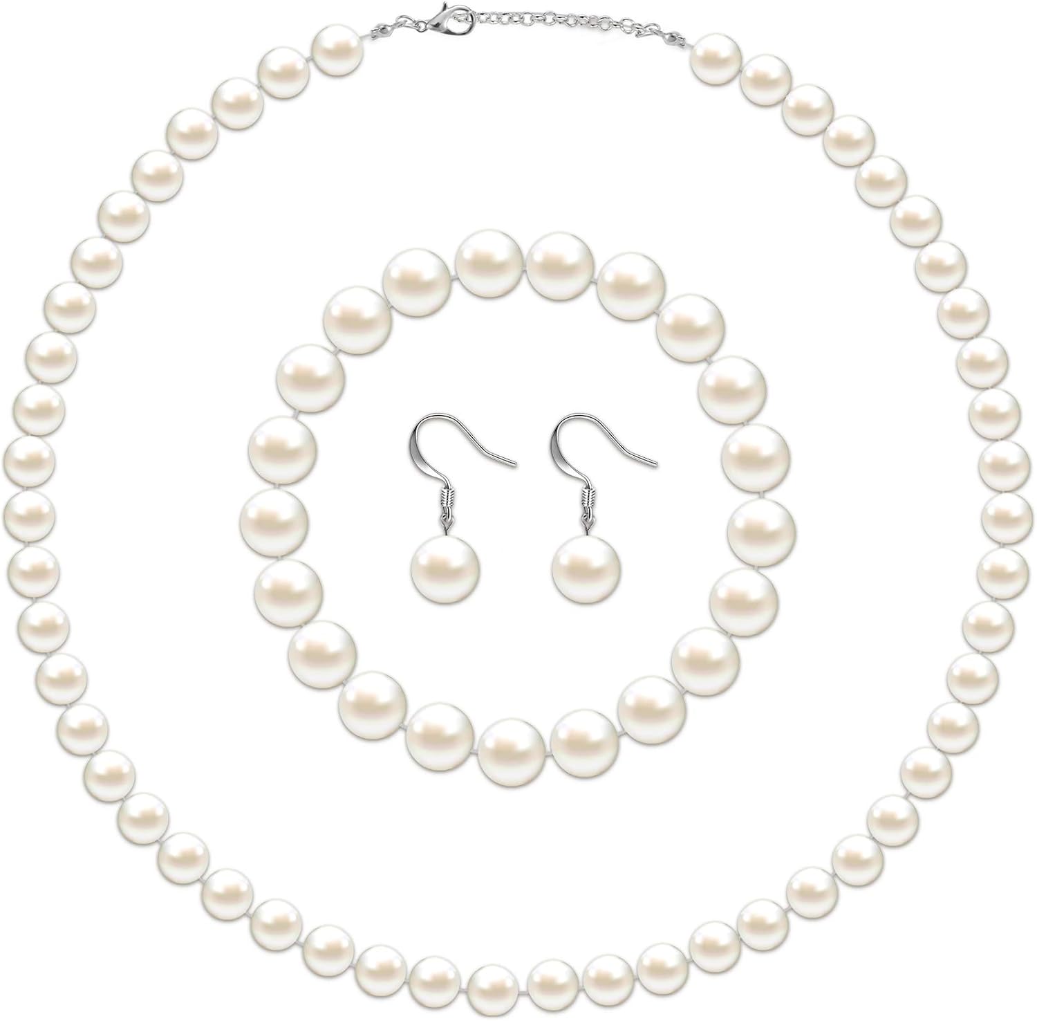 • Manifest the Elegance and Charm of Women: wear our delicate faux pearl necklace, matching pearl earrings, and stretch beaded bracelet, delicate jewelry always shows the elegance and charm of women, making you look elegant, confident, shiny and charming, and bringing you a good mood