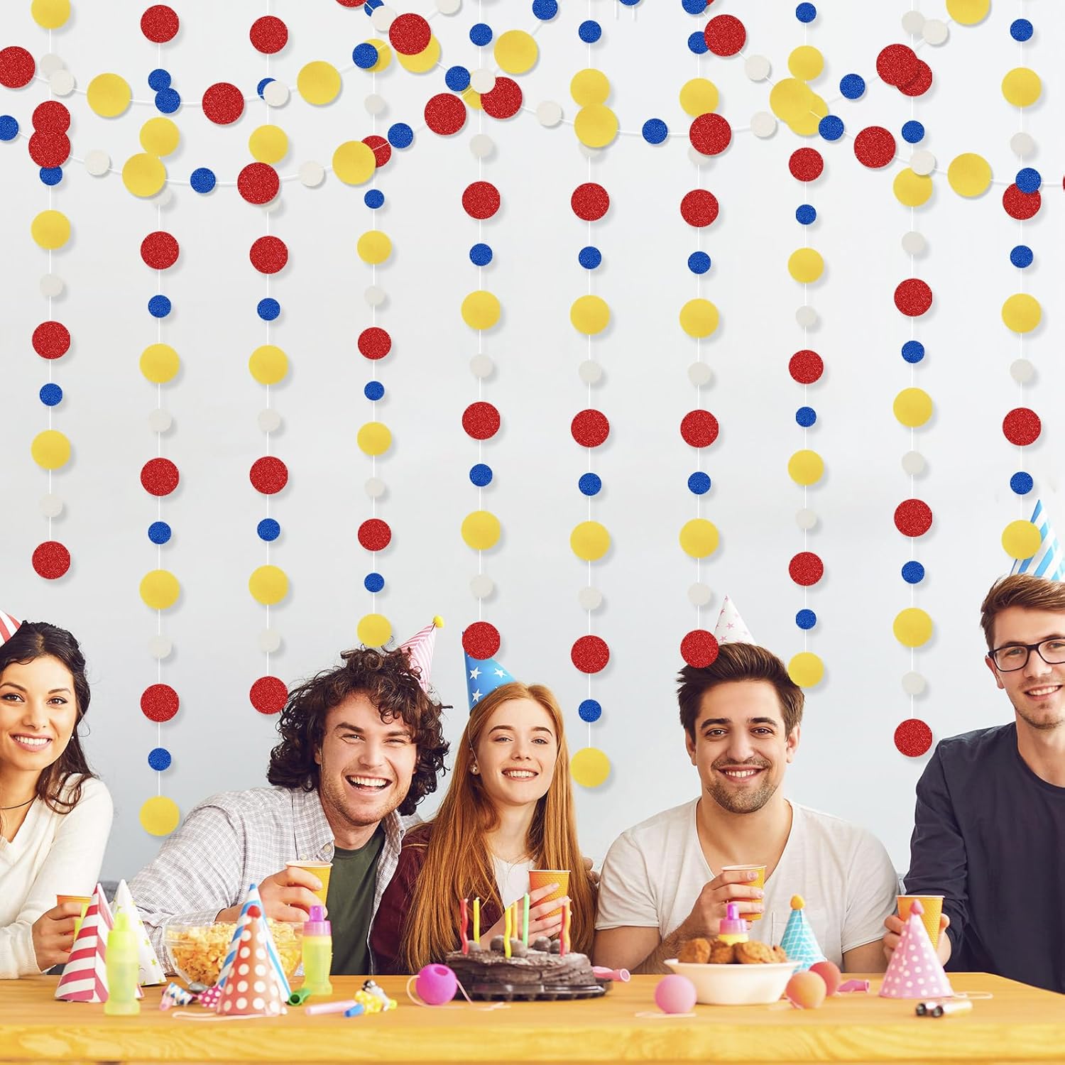 Outus 10 Pieces Colorful Dots Paper Garland Round Glitter Garland Hanging Confetti Streamers Backdrop for Candy Birthday Classroom Halloween Trunk or Treat Car Decoration (Red,Blue,Yellow)