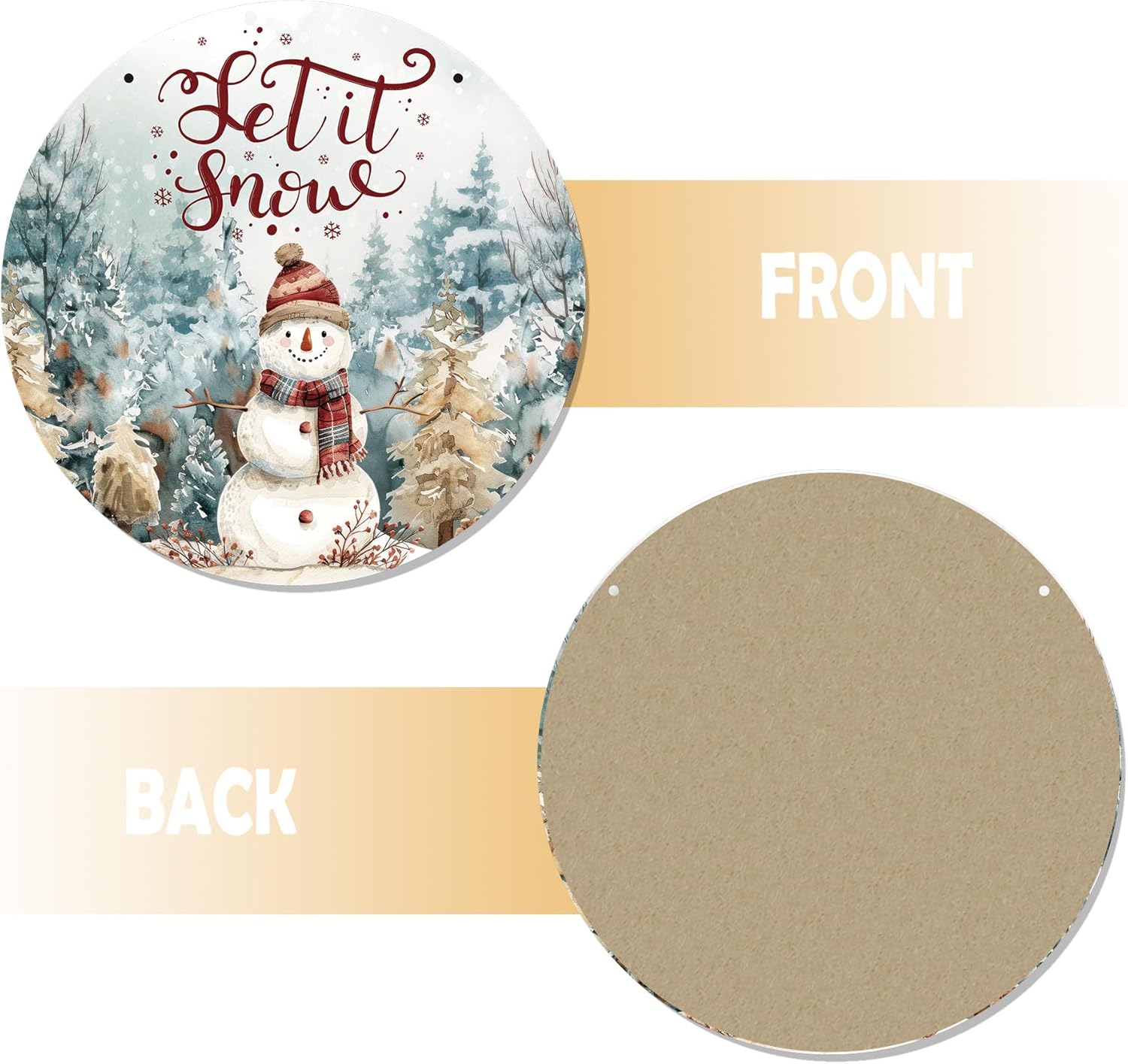 CGBHW Winter Snowman Wooden Sign, Christmas Xmas Pine Tree Landspace Hanging Sign Wall Decor for Farmhouse Home, Holiday Snowy Let it Snow Rustic Door Decor 12 x 6 Inch