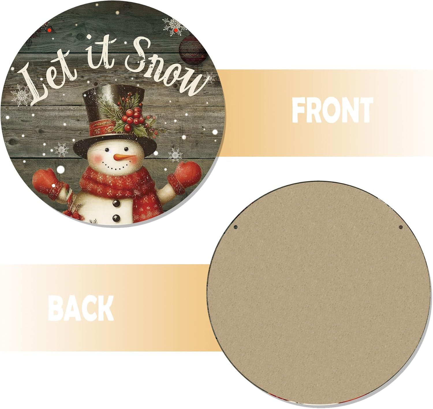 CGBHW Winter Wooden Sign, Vintage Snowy Snowman Hanging Sign Wall Decor for Room Home, Rustic Winter Snowflakes Christmas Holiday Let it Snow Door Decor 12 x 6 Inch
