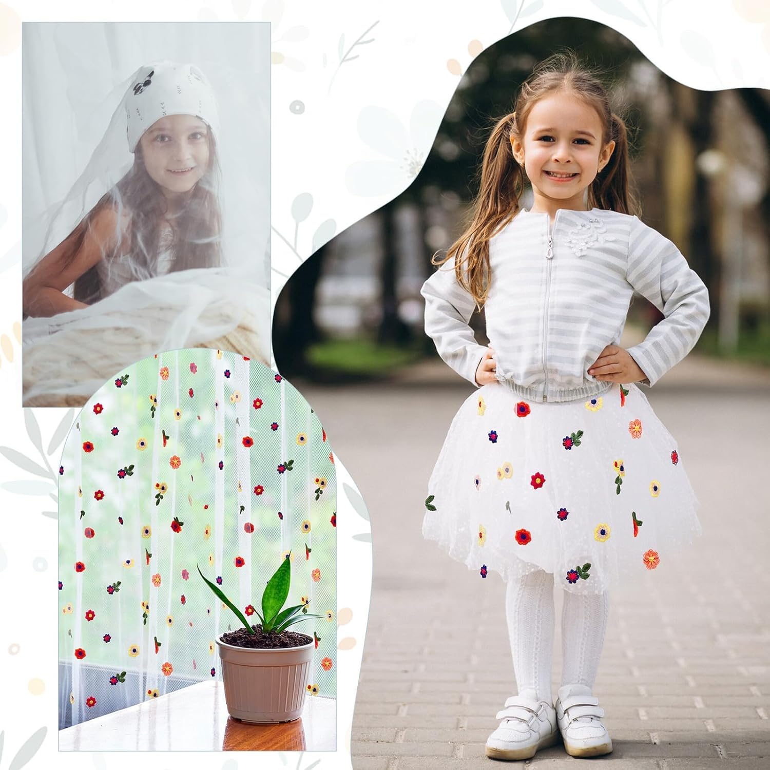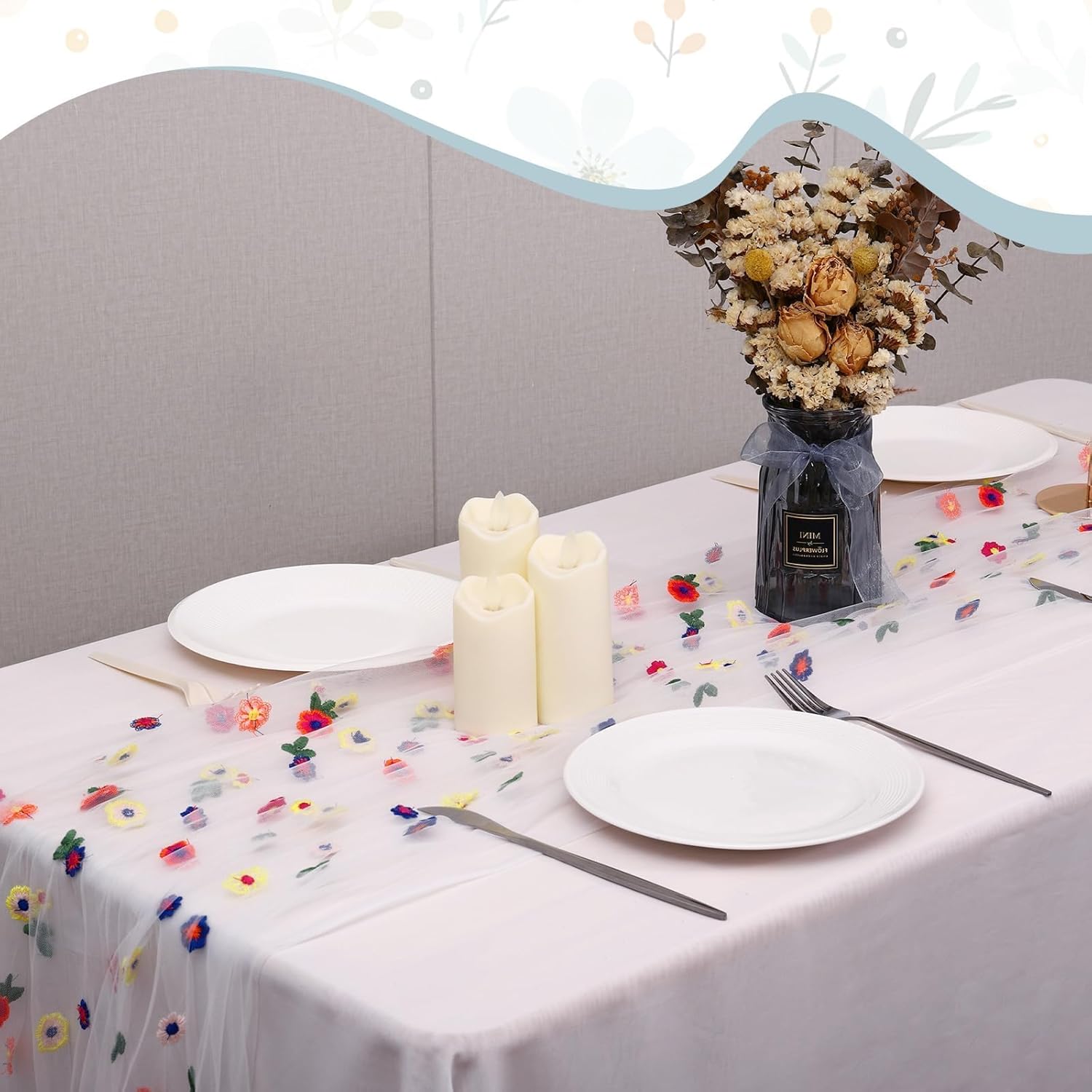 Lvory Floral Table Runner 10 FT, Embroidery Daisy Table Runners Seasonal Sheer Tulle Table Runner for Thanksgiving Wedding Birthday Baby Shower Party