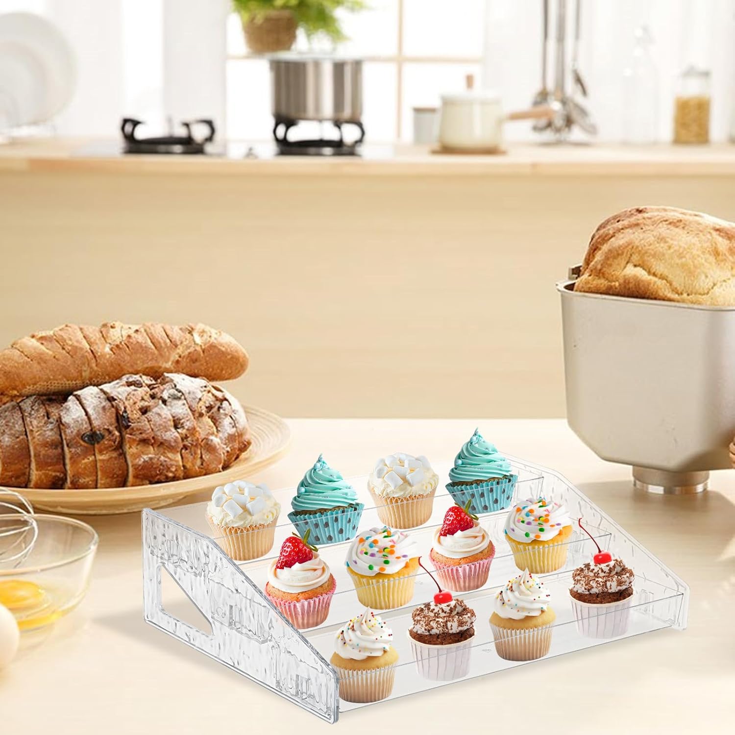 2 Pcs Perfume Organizer Stand, 3 Tier Acrylic Display Risers with Decorative Secure Fences, Tool-free Assembly, Clear Acrylic Shelf Risers for Cologne Cosmetic Dessert Cupcake for Countertop