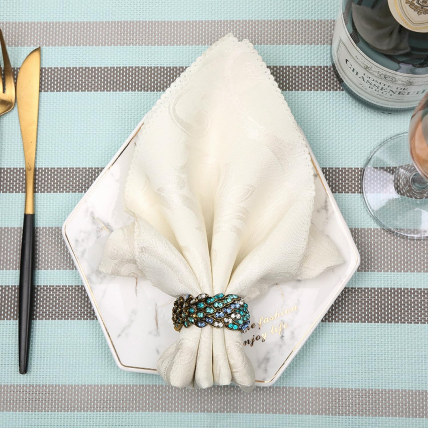 Jeweled Napkin Rings Set of 12 - Vintage Metal Crystal Rustic Peacock Napkin Ring Holders for Wedding Party Holiday, a Beautiful Dinner Table Décor (Multicolor) (12)