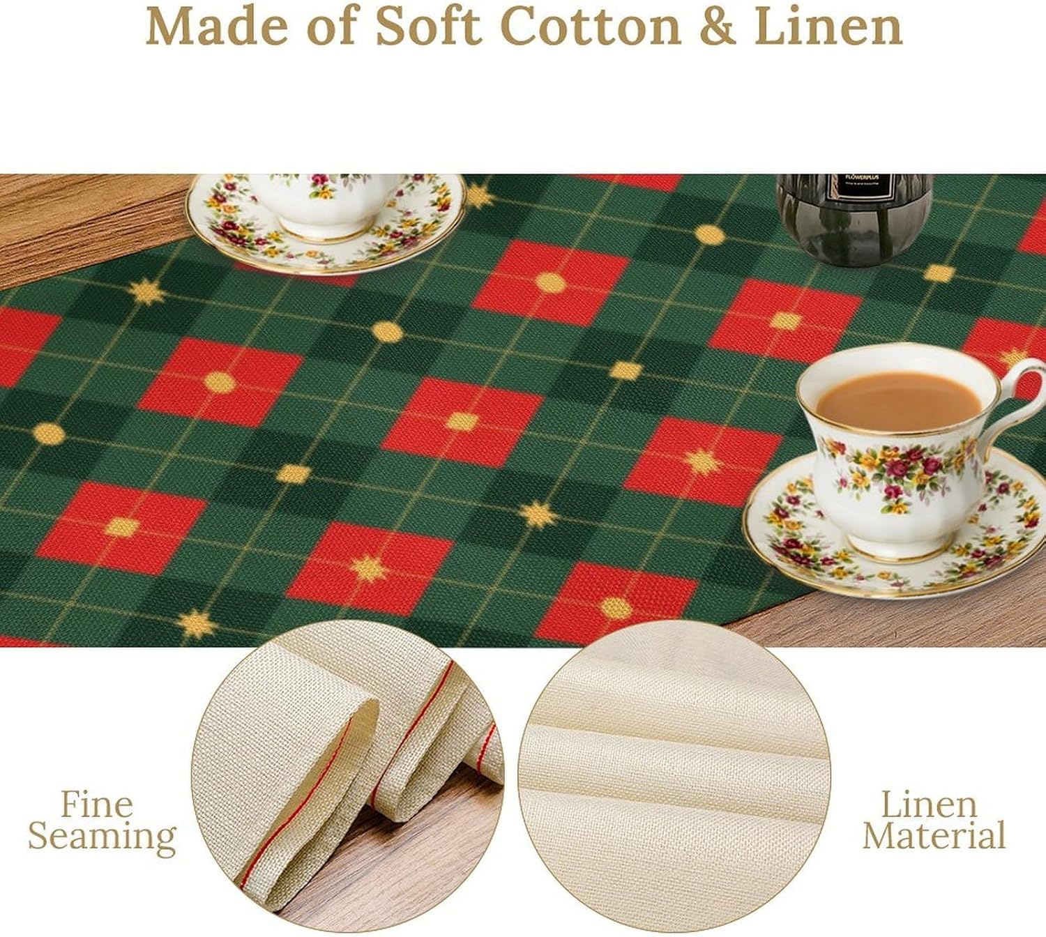 Christmas Table Runner,Green Red Xmas Plaid Table Cloth Kitchen Dining Table Decoration for Home Party Decor 13x120 Inch