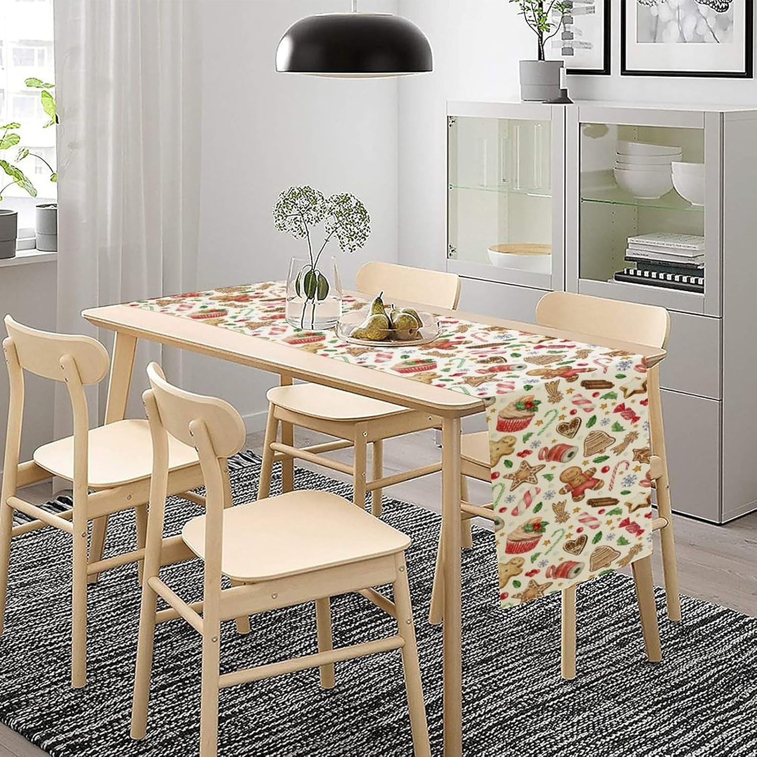 Christmas Table Runner, Christmas Gingerbread New Year Xmas Table Cloth Kitchen Dining Table Decoration for Home Party Decor 13x36 Inch