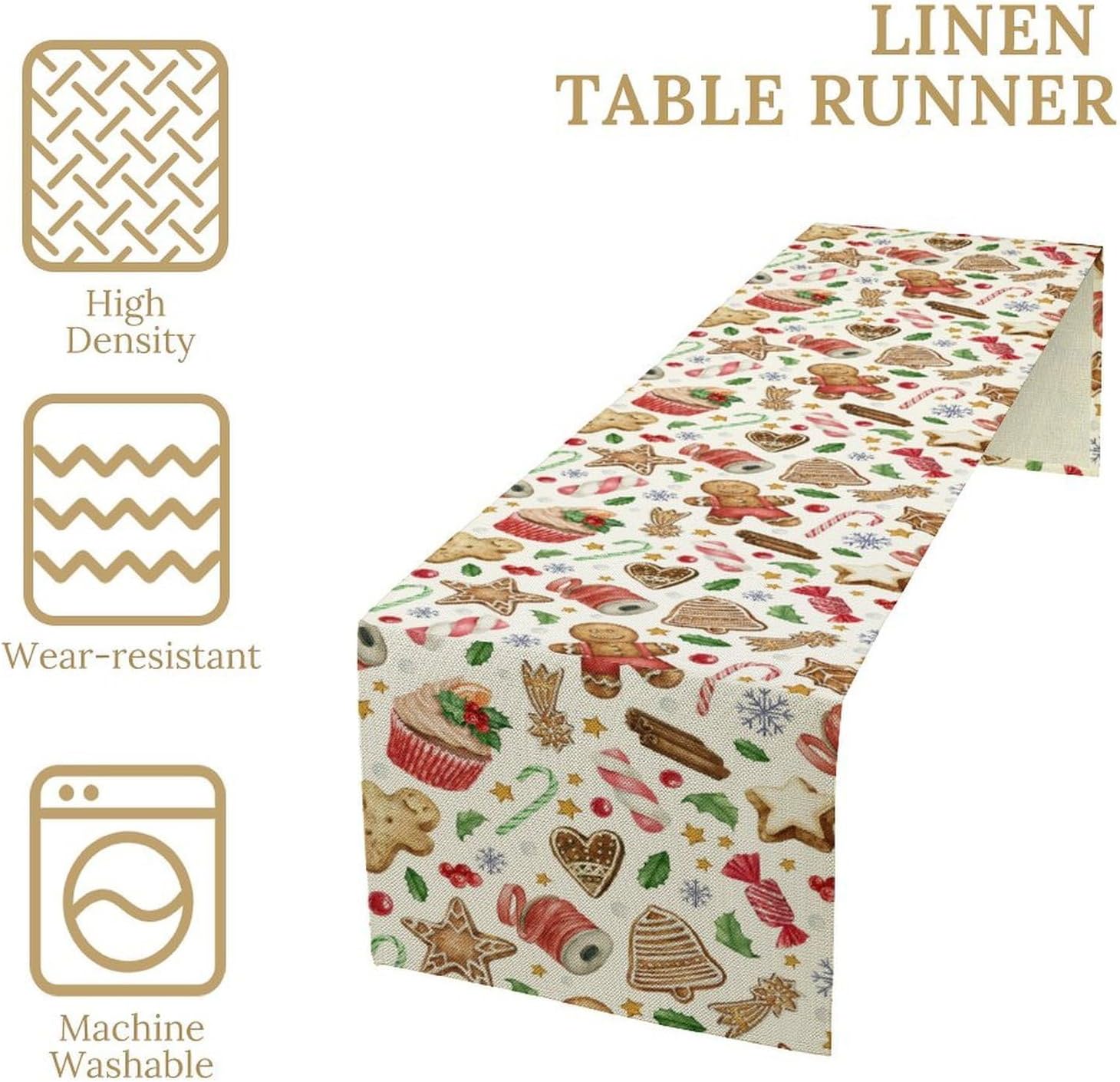 Christmas Table Runner, Christmas Gingerbread New Year Xmas Table Cloth Kitchen Dining Table Decoration for Home Party Decor 13x120 Inch