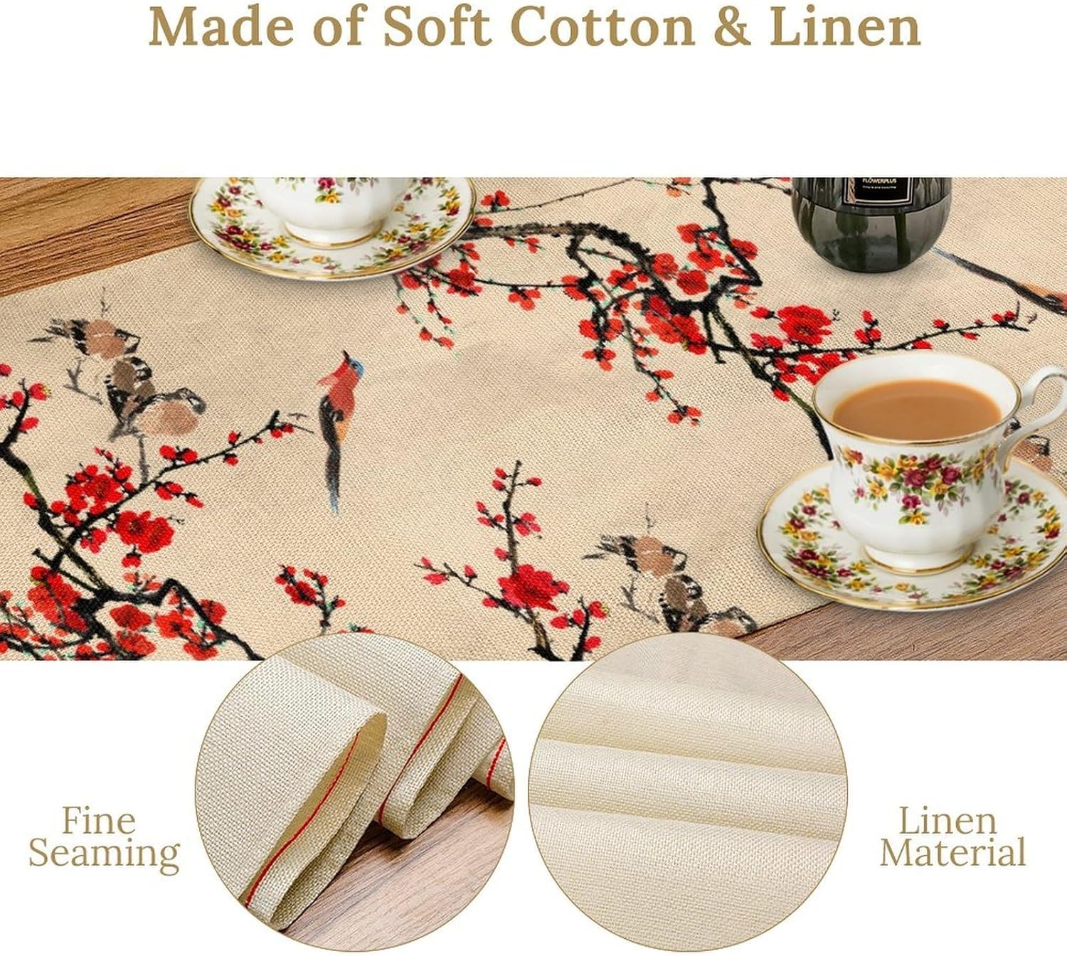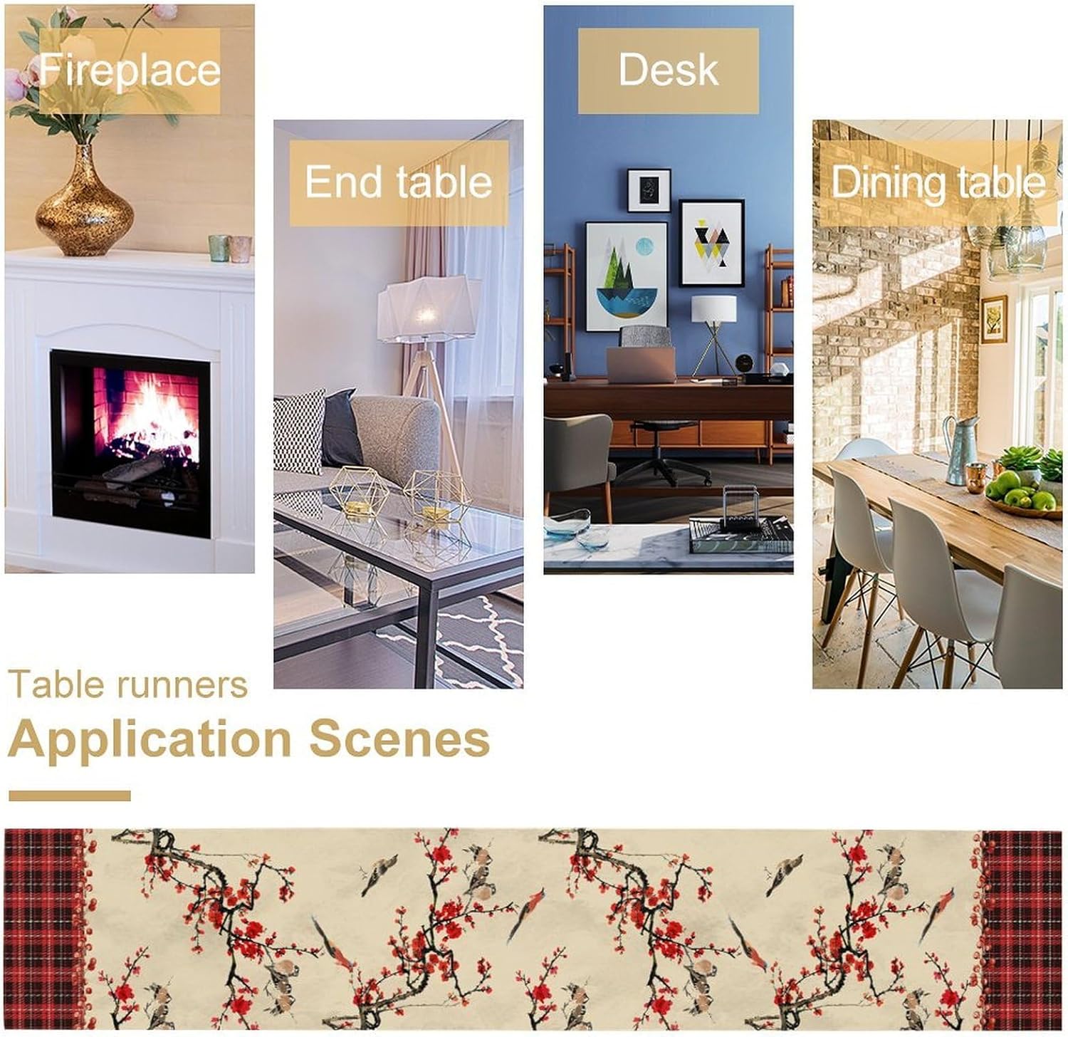 Bird Table Runner,Red Black Buffalo Plaid Blossom Seasonal Table Runner for Kitchen Dining Table Decoration Home Party Decor 13x70 Inch