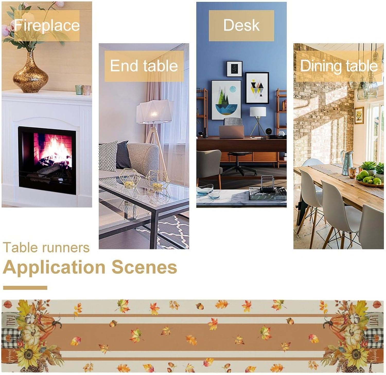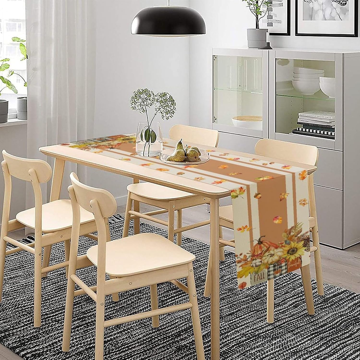 Autumn Table Runner,Thanksgiving Fall Pumpkin Leaves Floral Table Cloth for Kitchen Dining Table Decoration Home Party Decor 13x108 Inch