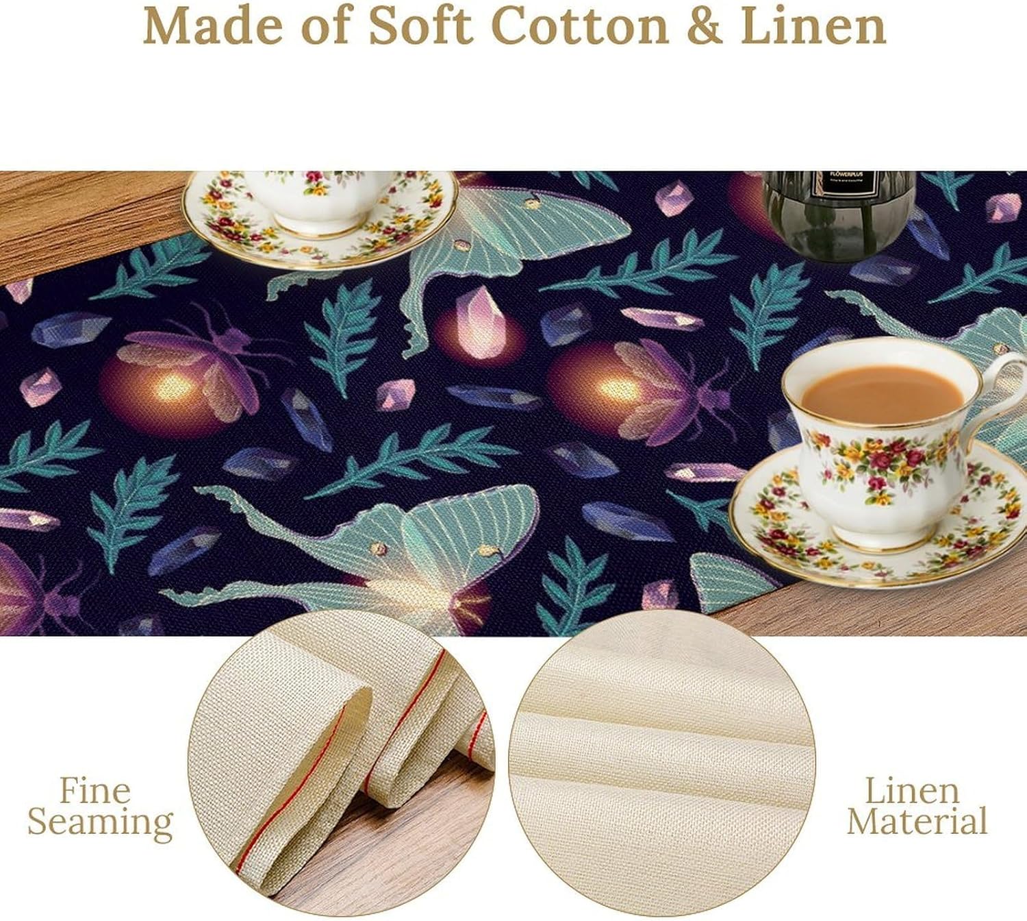 Moth Table Runner, Retro Boho Aesthetic Blue Moth Magic Table Runner for Home Kitchen Dining Party Indoor Outdoor Decoration 13x36 Inch