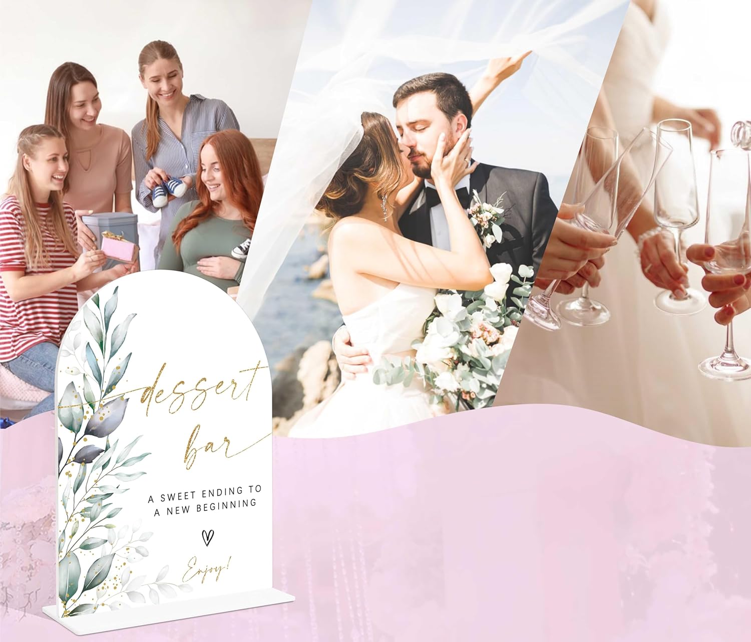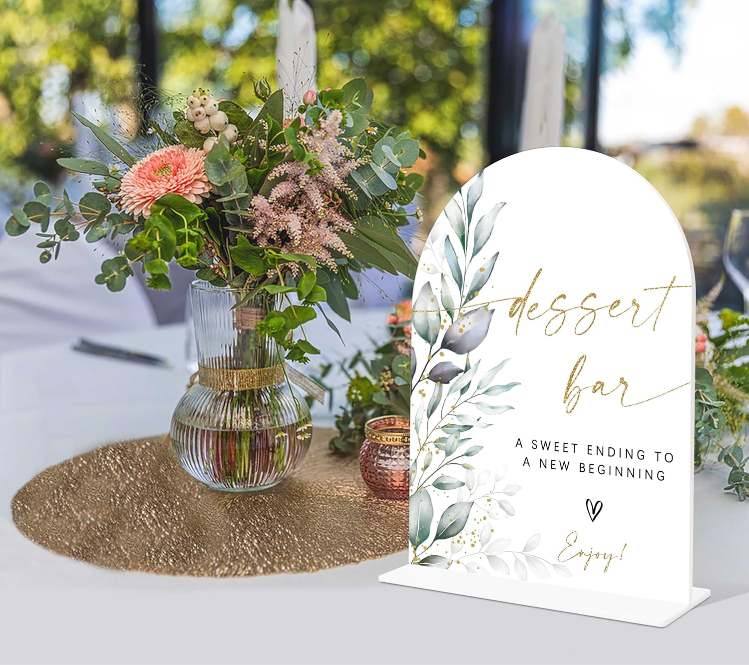 Acrylic Wedding Signs, Greenery Theme Dessert Bar Sign, Wedding Reception Signage, Bridal Shower Table Decor with Stand, Dessert Bar Supplies for Engagement, Anniversary, Newlywed Event and Party, 06