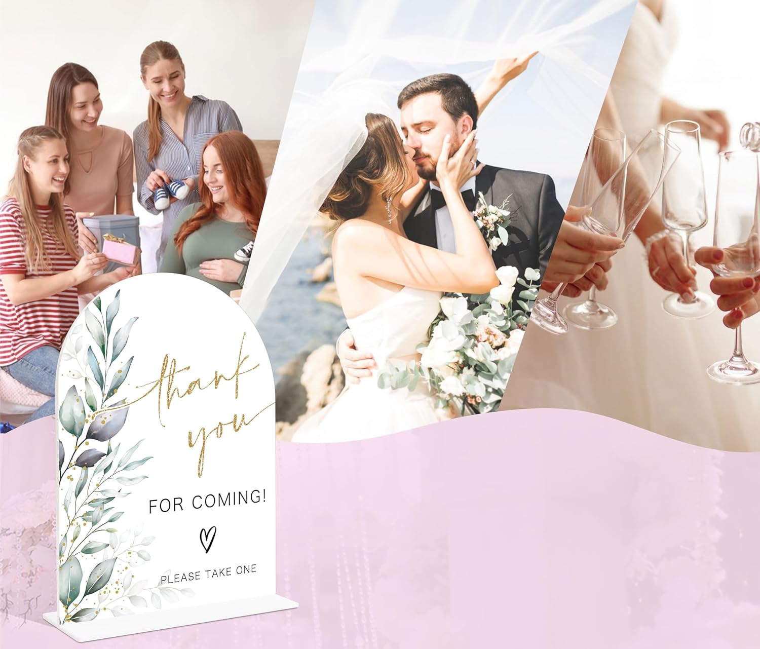 Acrylic Wedding Signs, Greenery Theme Thank You for Coming Sign, Wedding Reception Signage, Bridal Shower Table Decor with Stand, Engagement, Anniversary, Newlywed Events and Parties Supplies, 10