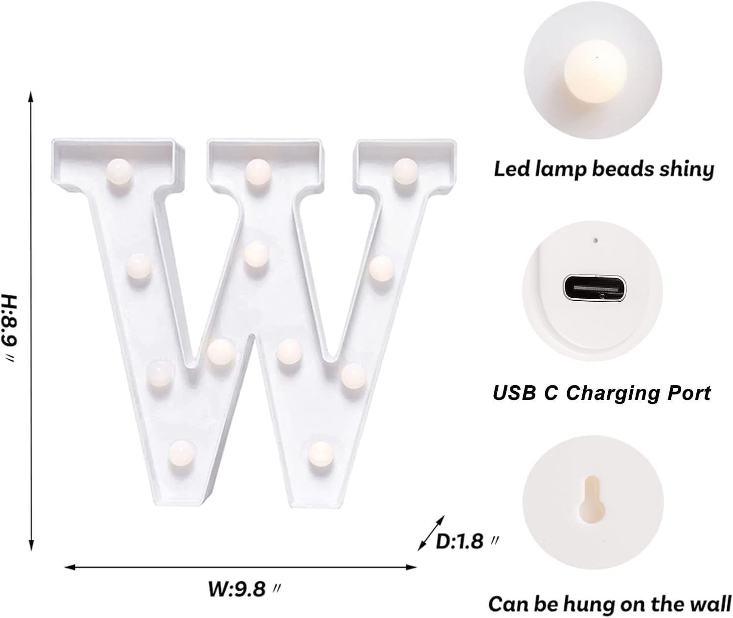 Foaky Rechargeable LED Letter Lights Sign Marquee Light Up Letters Sign for Night Light Wedding/Birthday Party Christmas Lamp Home Bar Decoration (W)
