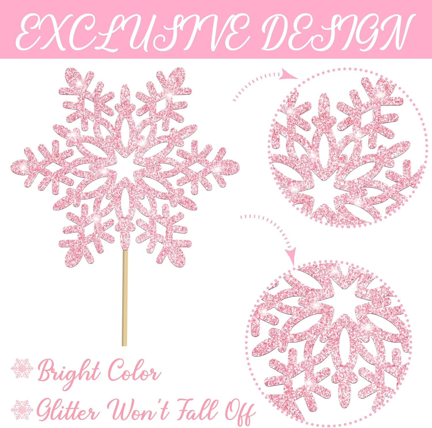 - Pack of 12pcs: You will get 12pcs glittering snowflake centerpiece sticks, including 6 silver and 6 pink snowflakes for elegant winter-themed decorations