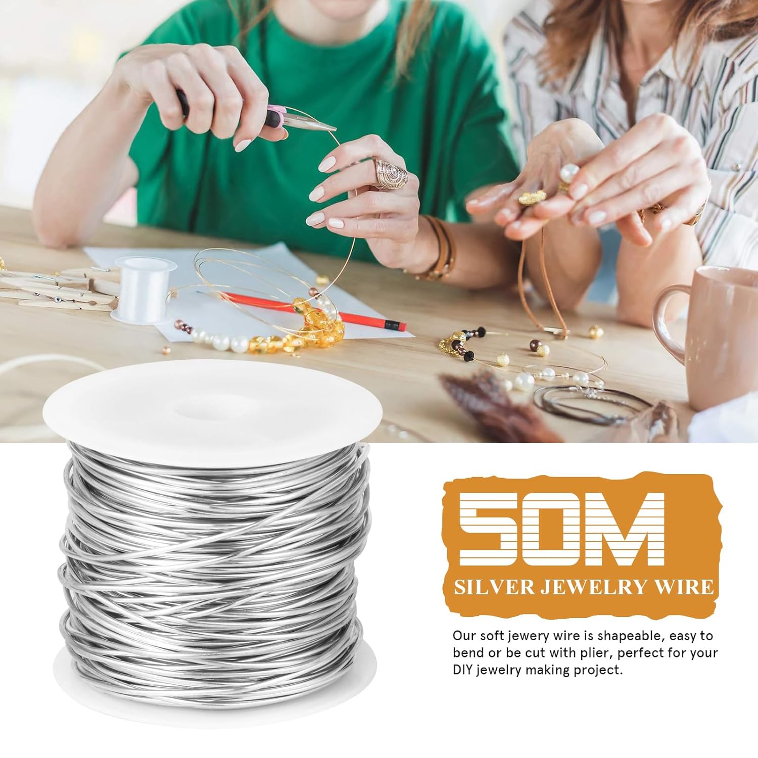 164FT Jewelry Wire 22 Gauge Tarnish-Resistant Copper Beading Wires Roll Bulk for DIY Crafts Jewelry Making, Silver Wire