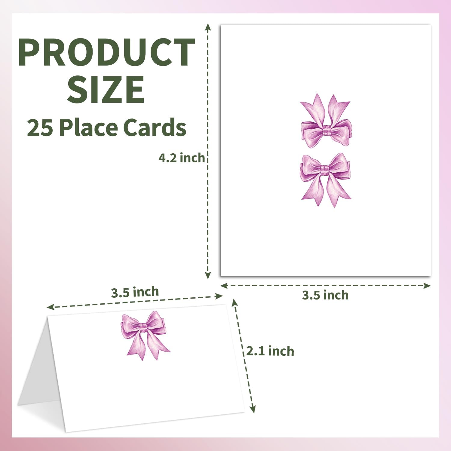 25 Purple Bow Place Cards for Table Seating, Watercolor Wedding Name Place Card, Tent Cards for Birthday Baby Shower Bridal Shower Reception Dinner Party Decorations -A26