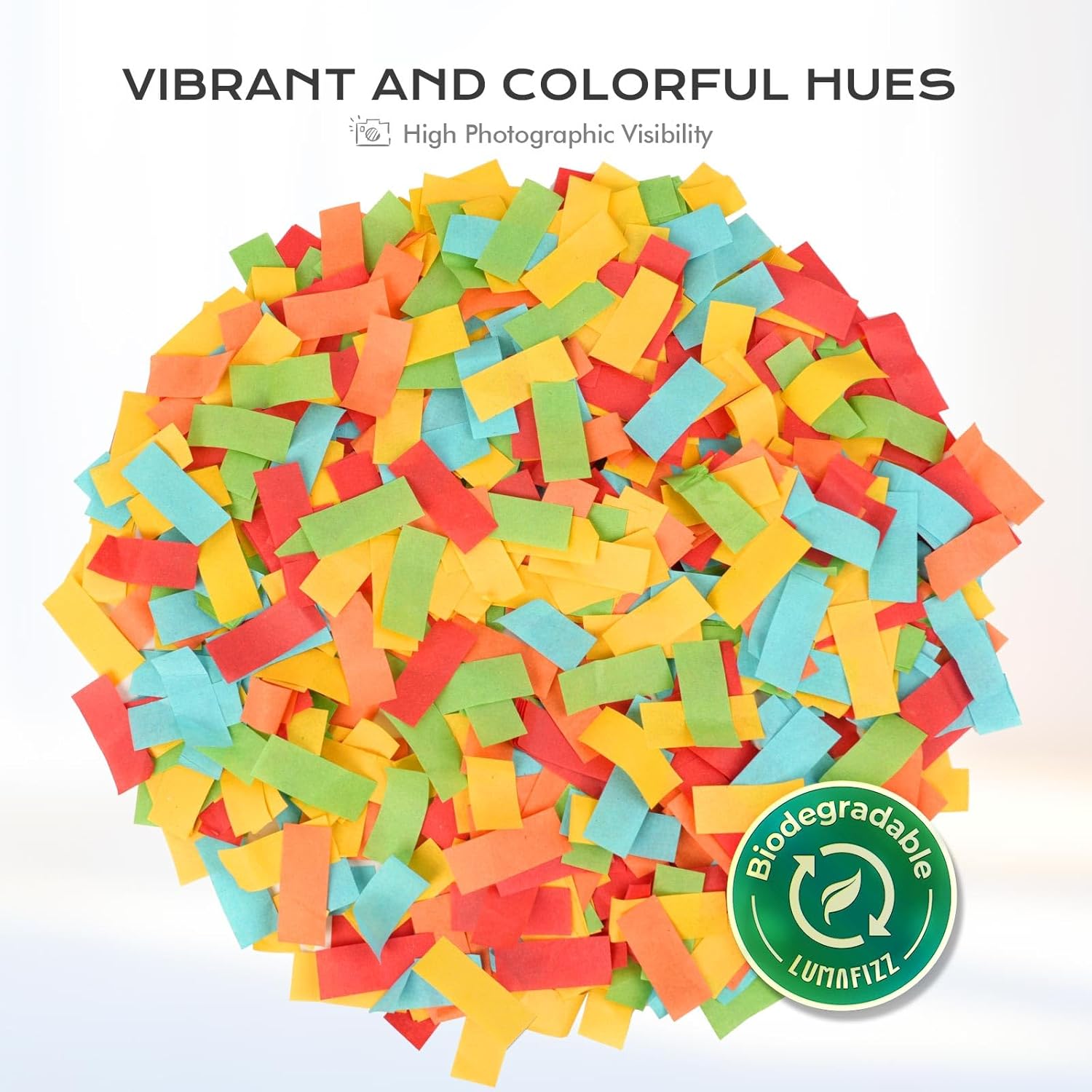 - 【EARTH-FRIENDLY CONFETTI】Love the planet while your Confetti Cannon lights up the sky. Every Confetti flutter is premium, dye-rich paper—100% biodegradable. Wind, rain, sunshine will guide it home, typically breaking down in weeks (Mother Nature’s encore, not a vanishing act). Celebrate bold with your Confetti Cannon, leave nothing but memories.