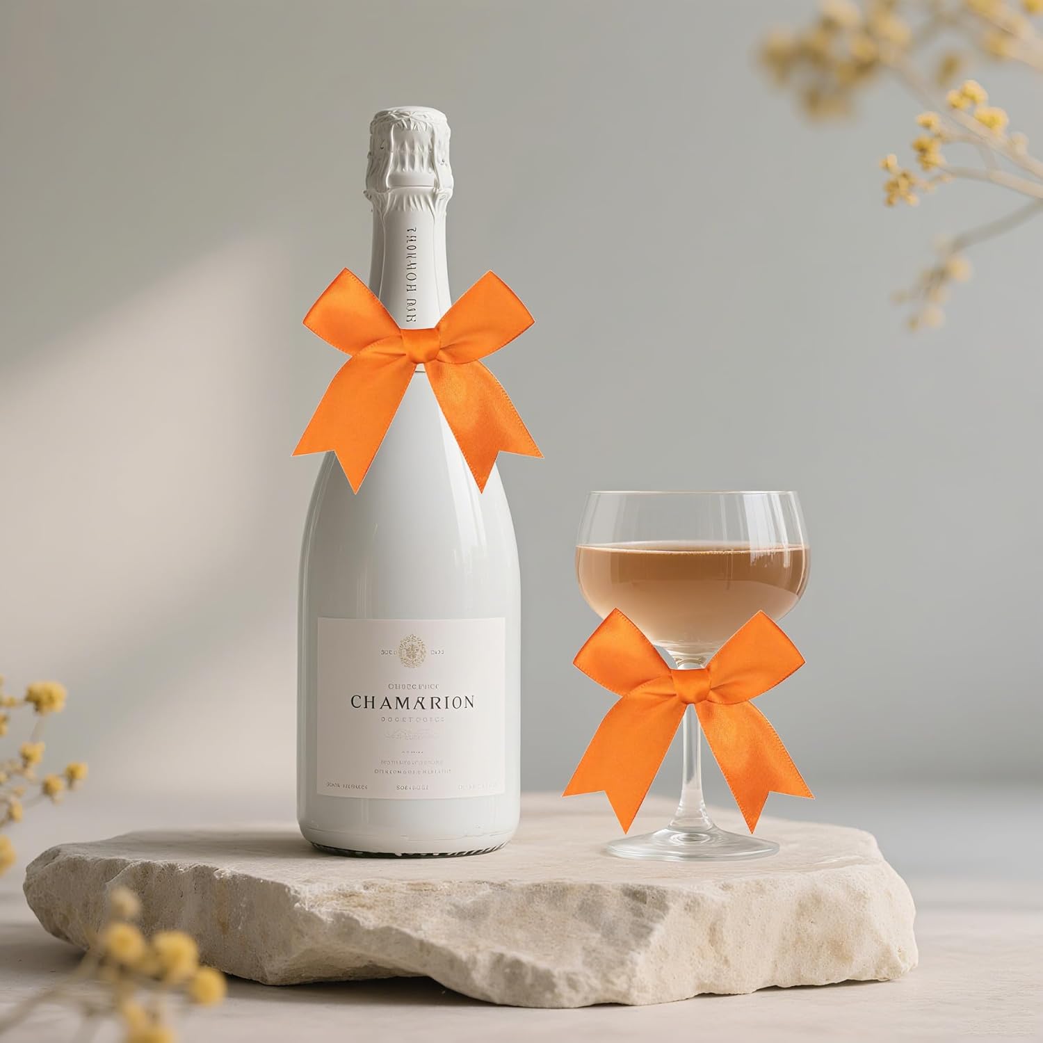 50 Pieces Gift Wrap Bows Premium Satin Ribbon Bows 3.3 Inch Craft Bows for Gift Wrapping DIY Treat Bags Holiday Gifts Bag Party Decorations, Wedding Decor Christmas Birthday Presents (Orange)
