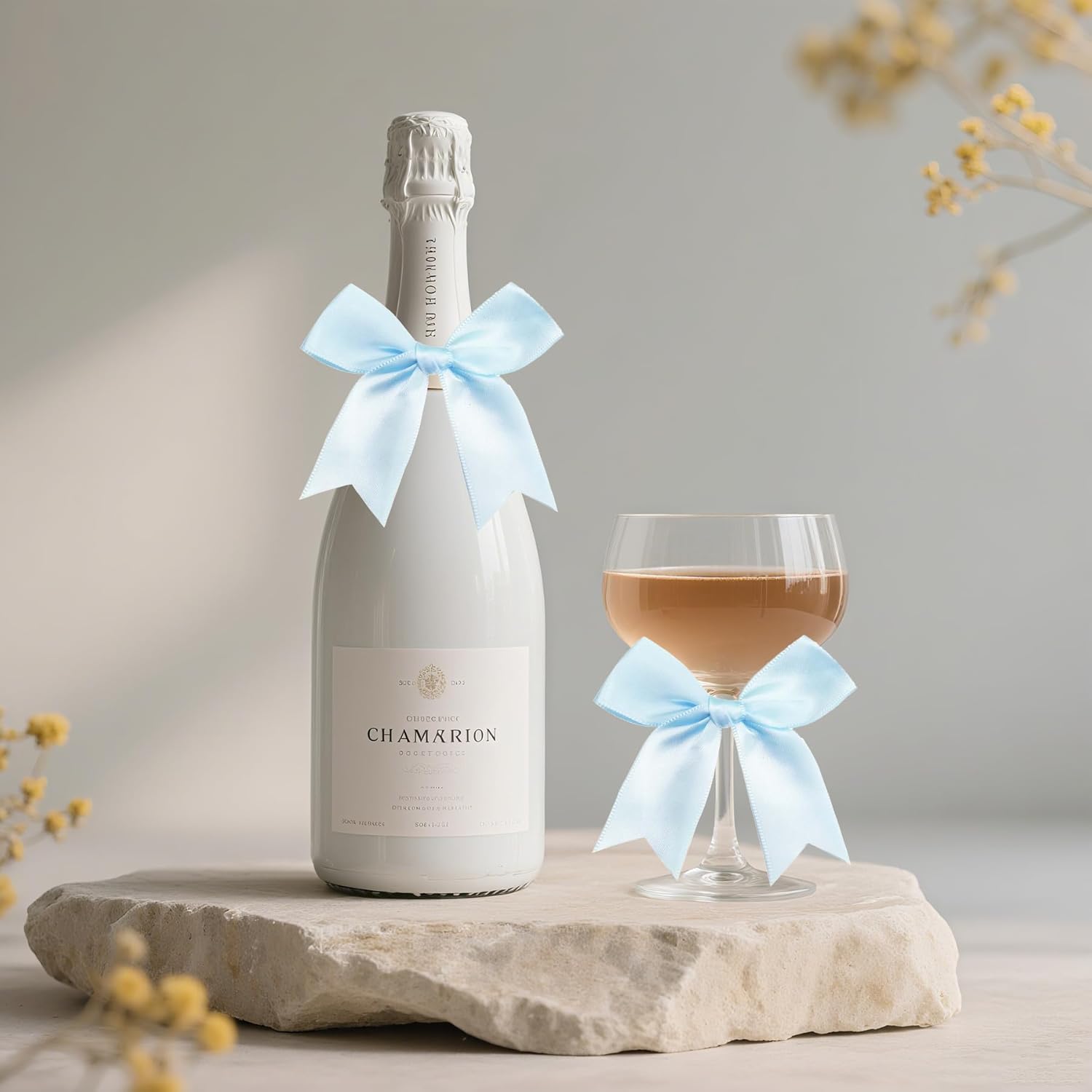 50 PCS Twist Tie Bows Satin Ribbon Bows 3.3 Inch Gift Wrap Bows Craft Bows for Gift Wrapping, Party Decorations Gifts Bag DIY Treat Bags Wedding Decor Baby Shower Christmas (Light Blue)