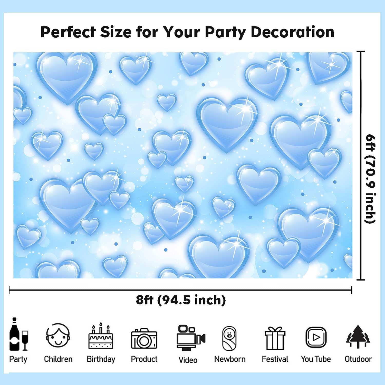 - Exquisite Design: The blue 90s backdrop designed with abstract bokeh background and sky blue hearts, it can be a highlight of decorations for your throwback party, adding more delightful and fantasy atmosphere to your event.