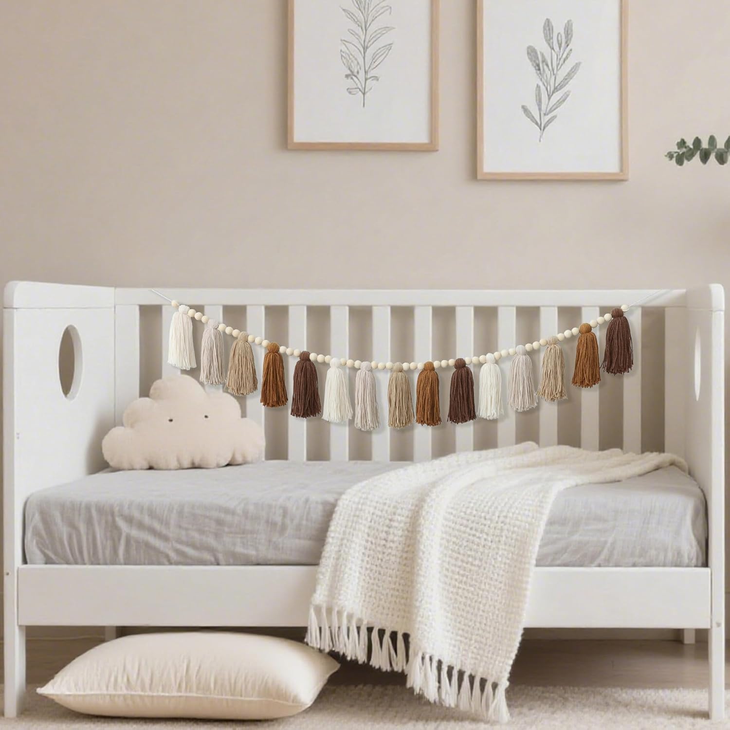 - Versatile Uses: The tassel decorations feature a bohemian-style design; they can serve as backdrop decorations for parties; they are also ideal decorations for nursery, kids bedroom, dormitories, offices, and other settings; they are suitable for various festivals, parties, and baby shower; The garland can be hung from the ceiling, mounted on walls and windows, or placed on the walls of baby bedrooms and nursery; it can also be used as party dessert decorations, table decorations, or background props