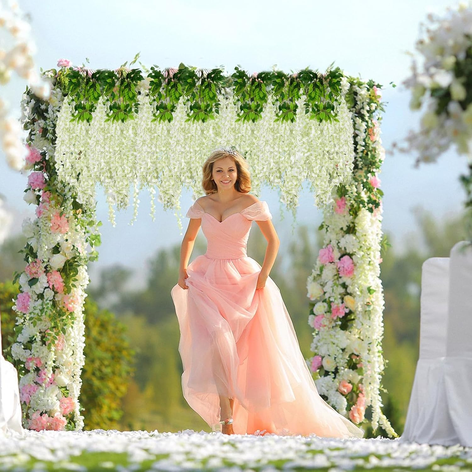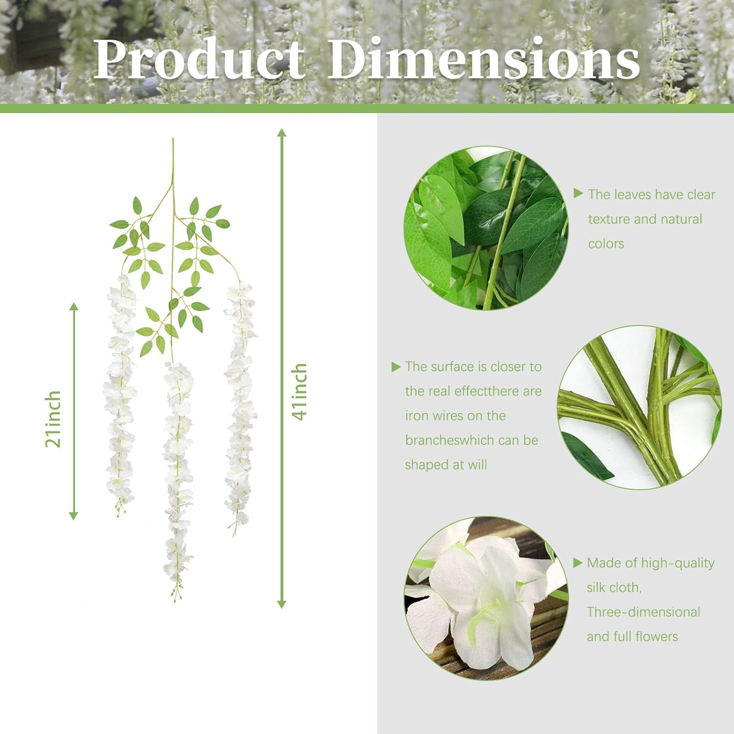 - 【Cycle Used】The green white artificial wisteria garland is made of silk, the stem is made of metal wire and plastic, and it can be easily bent and recovered, so you can use it many times, very environmentally and cost-effective.