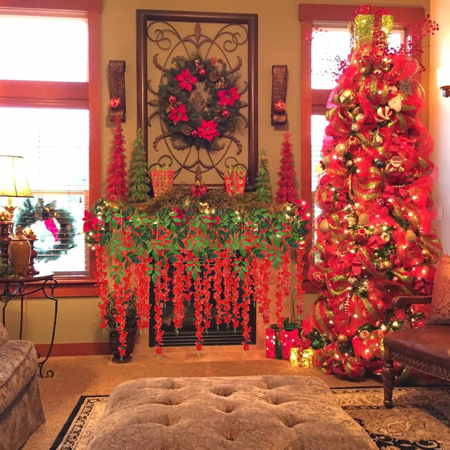 - 【Red Wisteria Garland】Whether you decorate beautiful red wisteria hanging flowers indoors or outdoors, you can achieve a magical decorative effect. Decorating the interior makes your home look full of life while decorating the exterior makes the environment more springy.