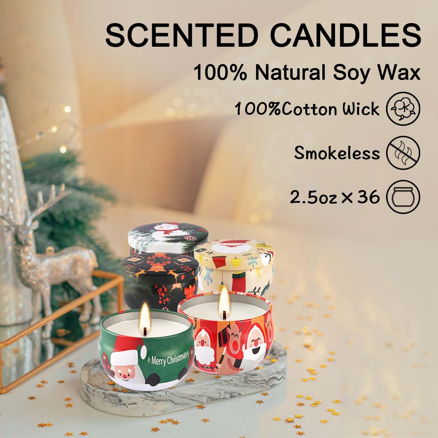 36 Pack Christmas Scented Candles Gift Set 2.5oz Strong Fragrance jar Candles Natural Soy Wax Candles Portable Travel Tin Jar Candles Gifts for Home Scented Decoration Birthday Valentine'sDay