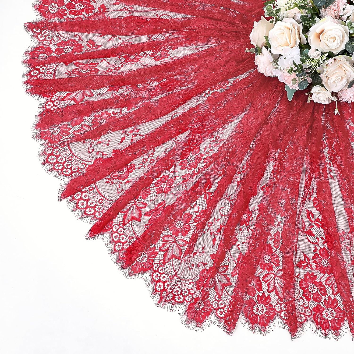 LuoluoHouse Christmas Lace Tablecloth 6pcs Rose Floral Table Fabric 60x120 Inch for Rustic Theme Party Wedding Decoration Rectangle Overlay Long Embroidered Reception Table Cloth Decor