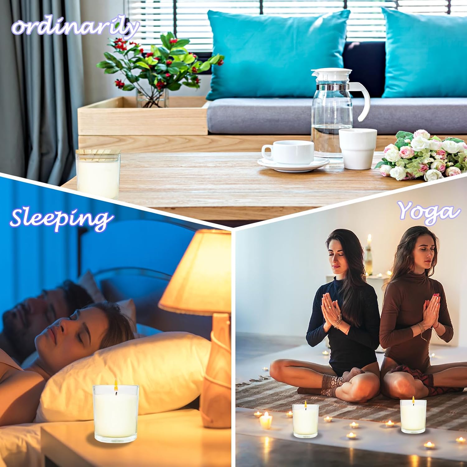 - 🪔🪔LONG BURNING TIME: Our soy candles are made of high quality glass and burn-resistant candles, each one can last up to 24 hours and give off a light eucalyptus scent, which makes it long lasting to create an elegant atmosphere for you