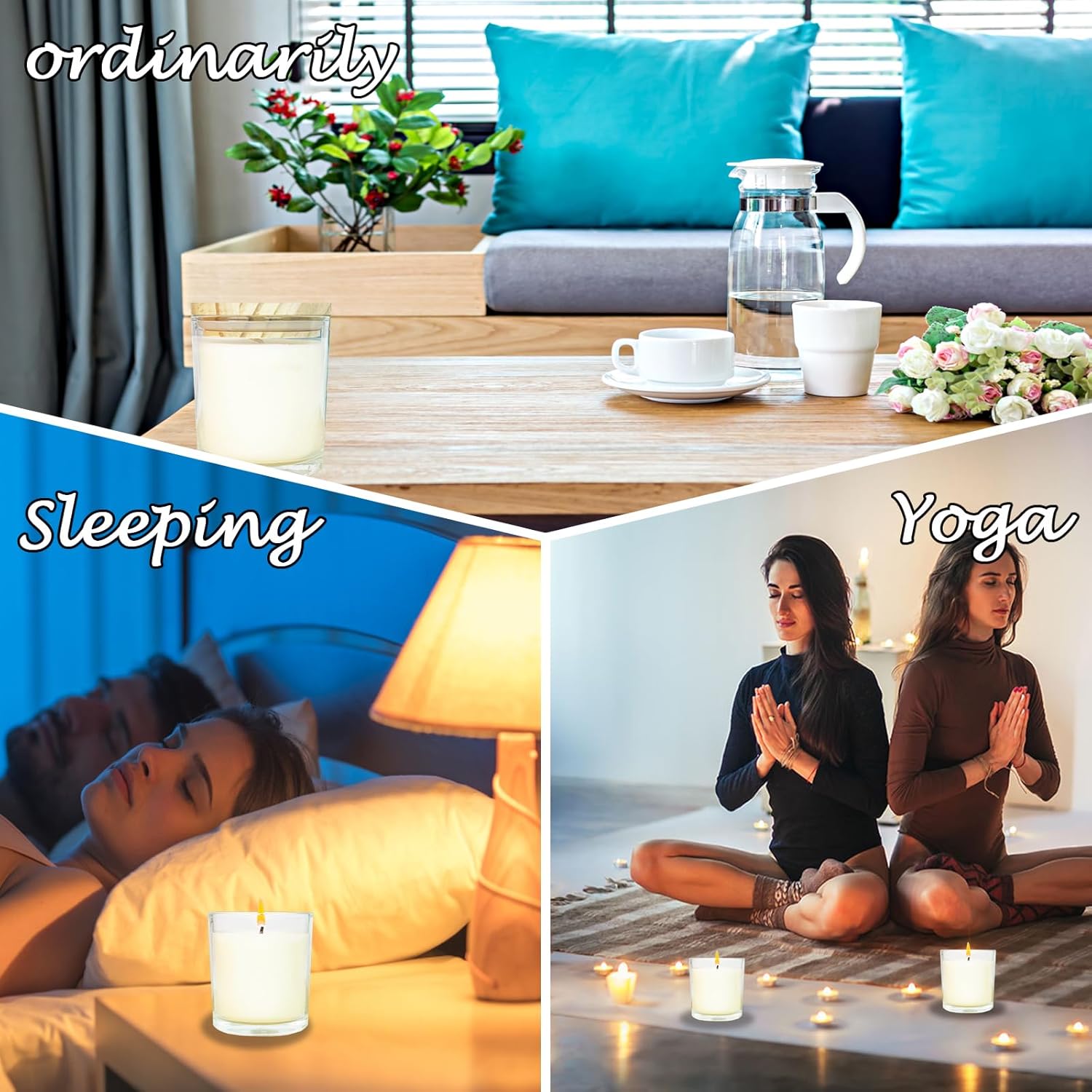 - 🪔🪔LONG BURNING TIME: Our soy candles are made of high quality glass and burn-resistant candles, each one can last up to 24 hours and give off a light vanilla scent, which makes it long lasting to create an elegant atmosphere for you