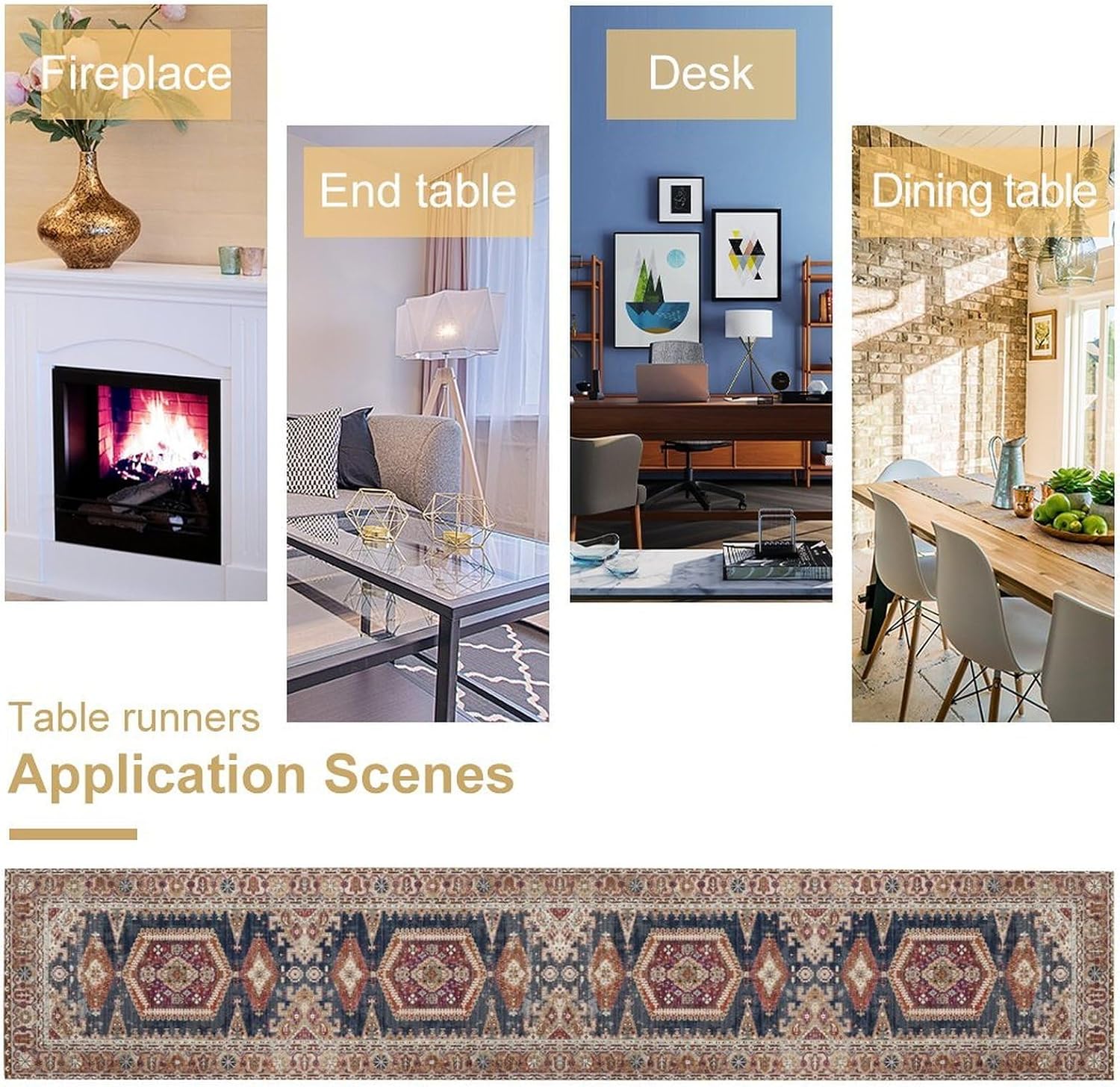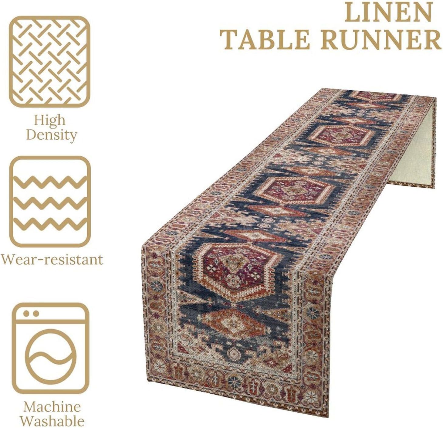 Vintage Boho Table Runner,Flower Geometric Design Rustic Farmhouse Table Runner for Home Farmhouse Kitchen Table Dining Coffee Room Garden Party Wedding Decor 13x72in