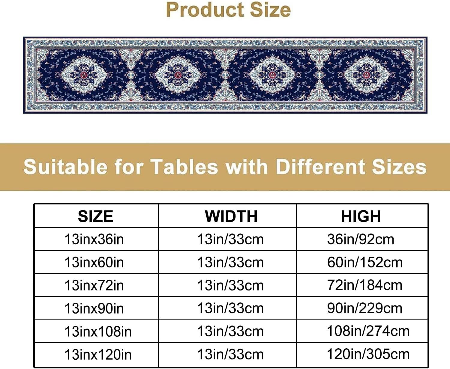 Elegant Palace Boho Blue Table Runner Vintage French Style Farmhouse Geometric Home Farmhouse Kitchen Table Dining Coffee Room Garden Party Wedding Decor 13x60in