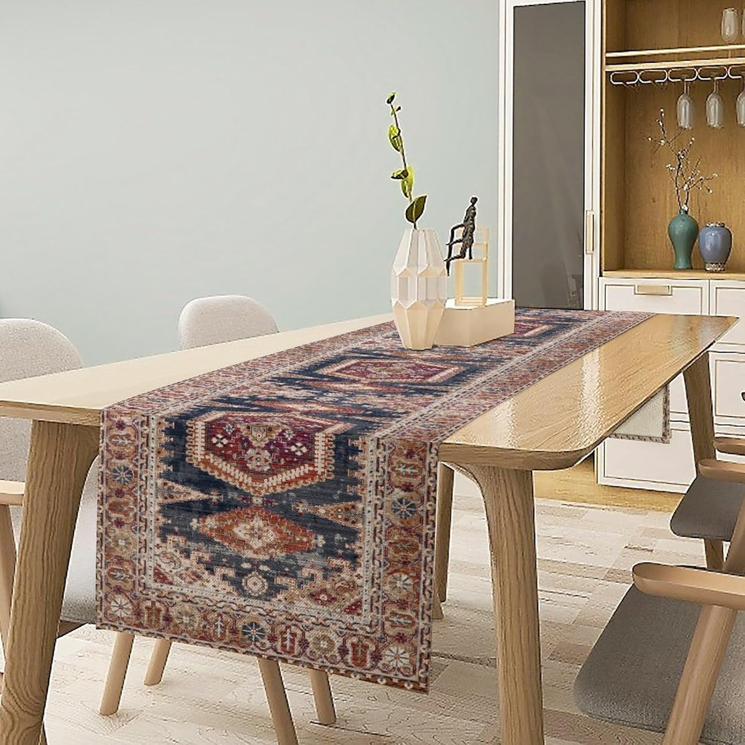 Vintage Boho Table Runner,Flower Geometric Design Rustic Farmhouse Table Runner for Home Farmhouse Kitchen Table Dining Coffee Room Garden Party Wedding Decor 13x90in