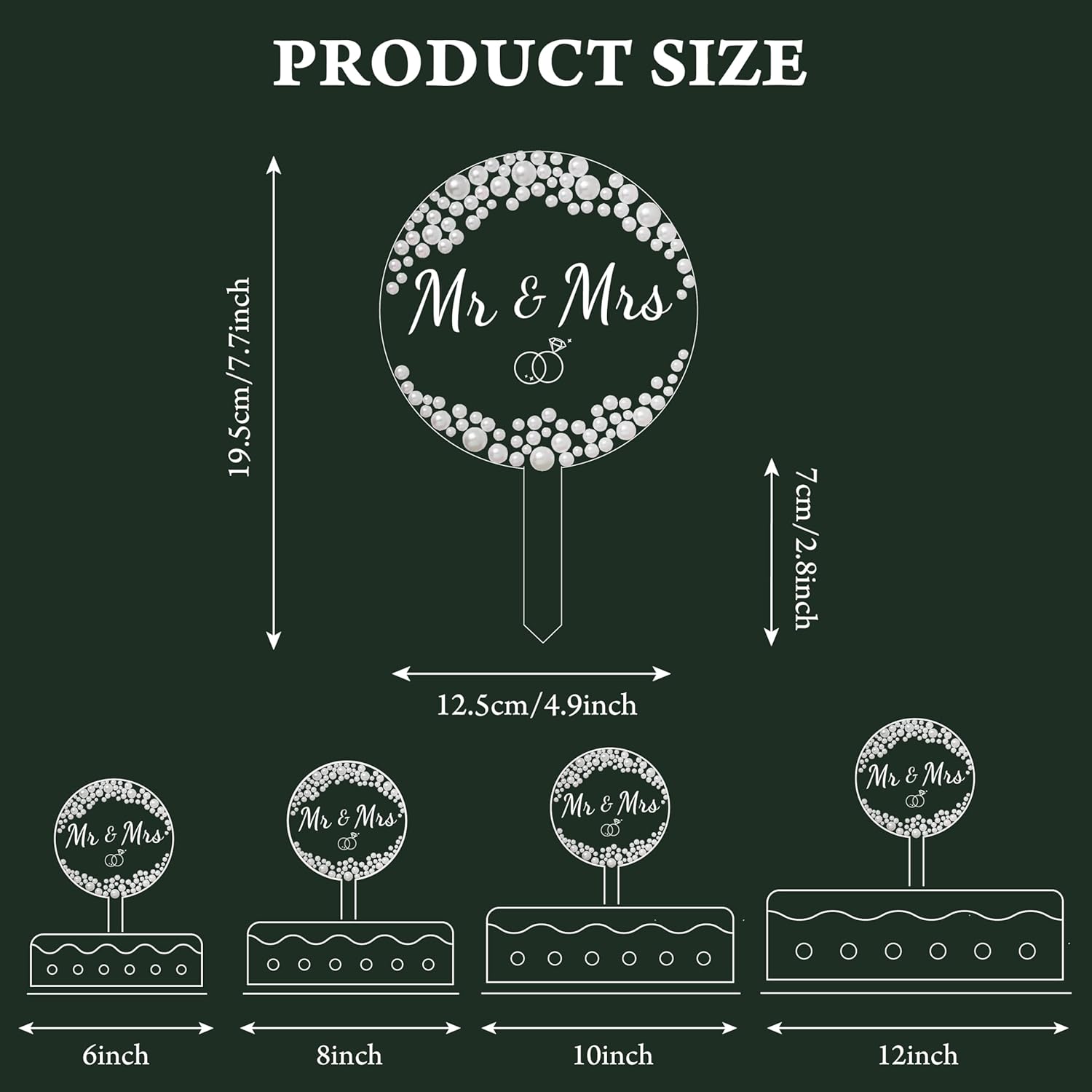 Coucoland Mr and Mrs Cake Topper - Round Acrylic Wedding Cake Decor with Elegant Pearls for Engagement Bridal Anniversary