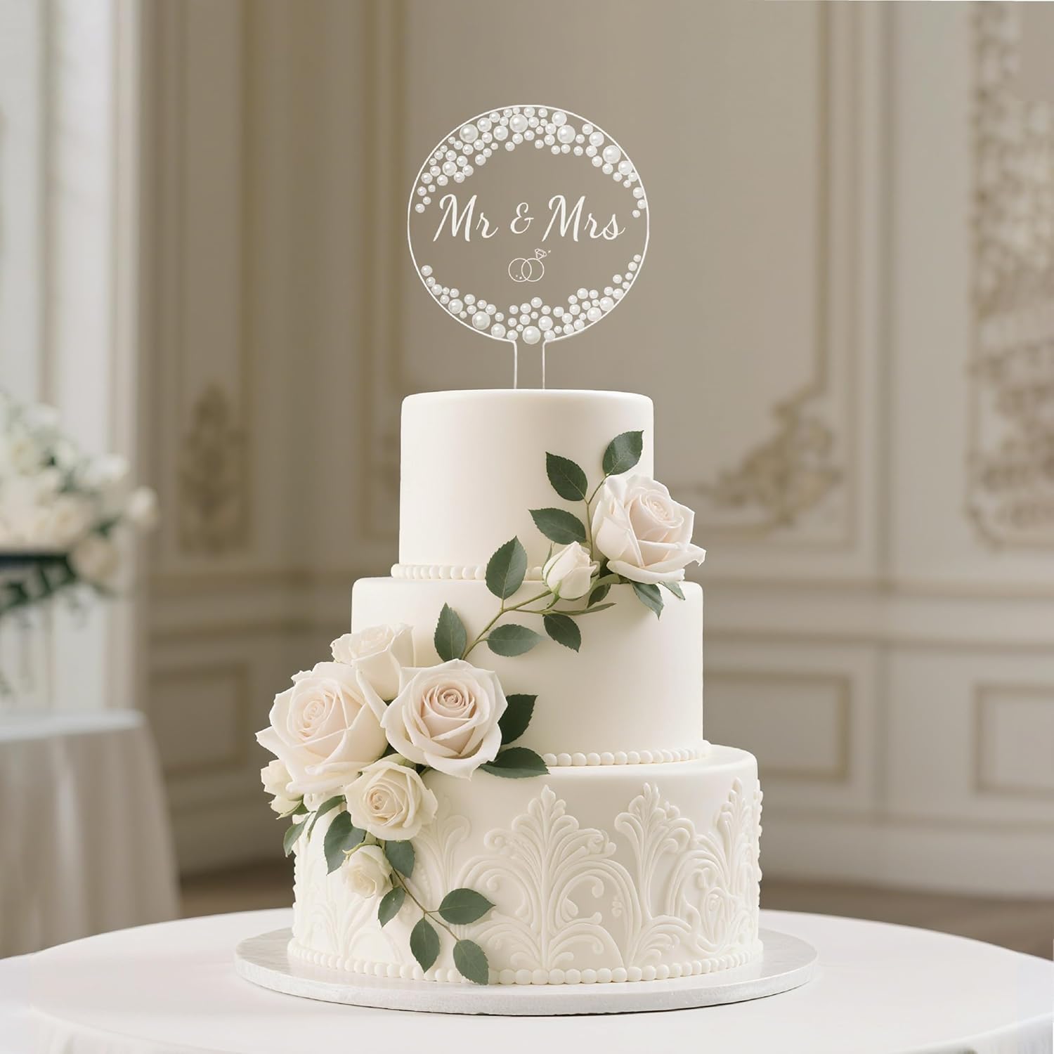 - Design: Features crystal-clear acrylic adorned with faux pearls that radiate elegant brilliance, while its minimalist yet sophisticated design complements both modern and classic wedding cakes as a timeless focal point