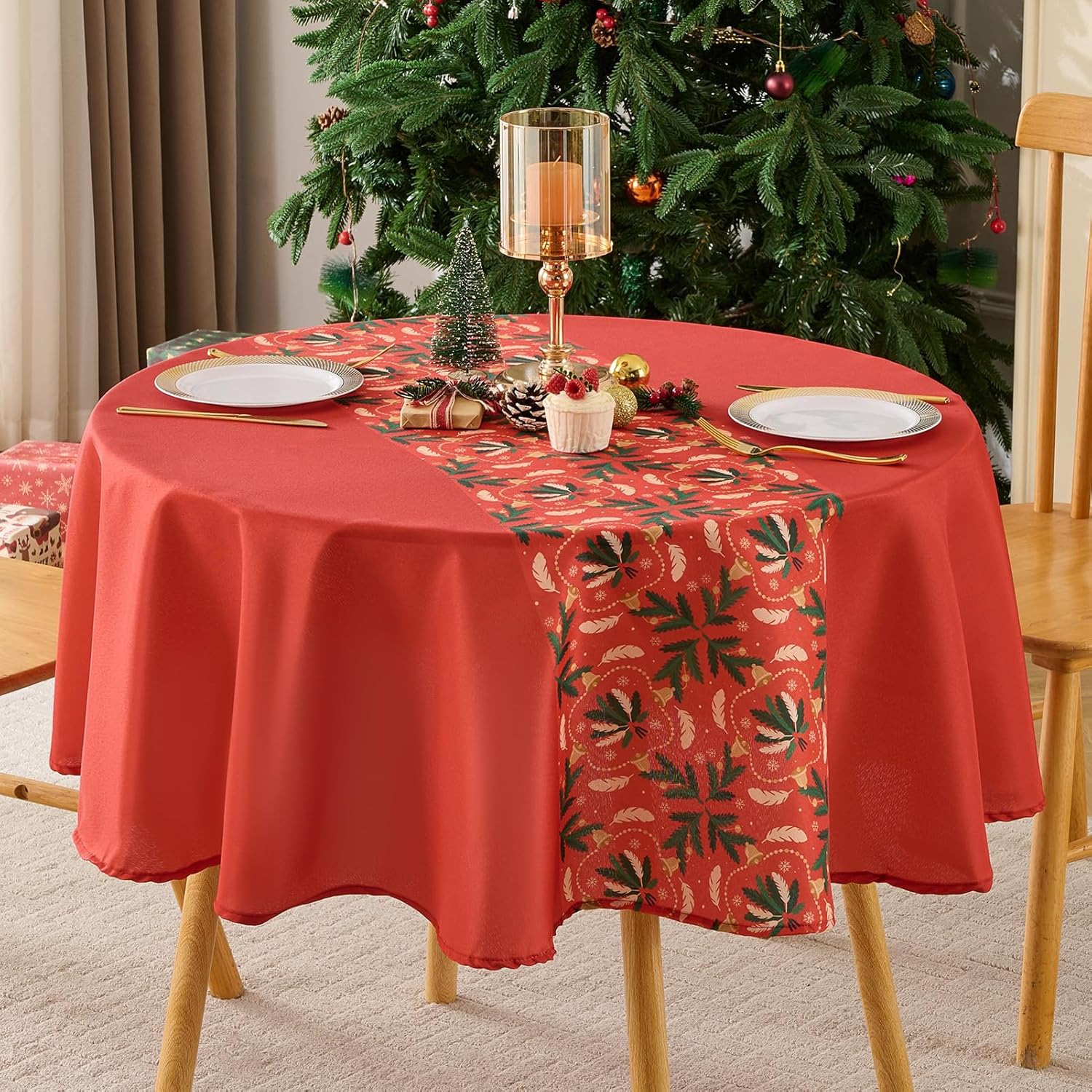 - Water and Stain Resistant: Aocoz round Christmas tablecloth is made of 100% durable polyester with special waterproof treatment, it can be reused after washing, and it does not contain harmful chemicals and has no odor, which is good for protecting your table, and can also make your Christmas parties more atmosphere