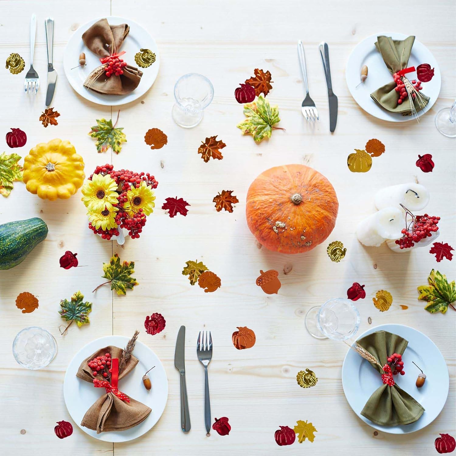 - Thanksgiving Party Decoration Confetti: you will receive 500 pieces Thanksgiving confetti, including maple leaf, turkey, pumpkin, pine cone and acorn confetti; brighten up your Fall Thanksgiving party and celebration with these adorable foil confetti, scatter across your party table to add a festive touch and make a perfect decoration that your guest will love it.