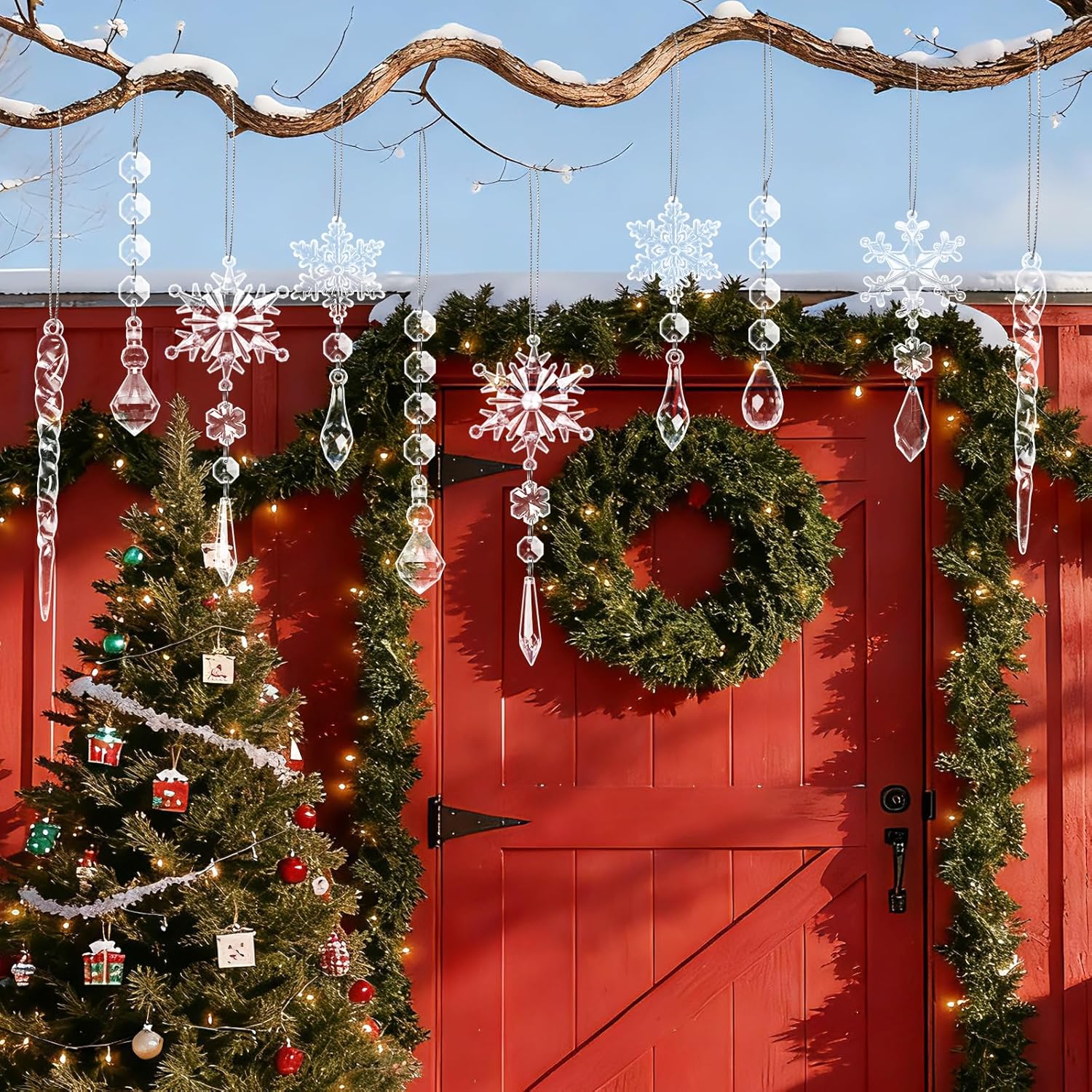 - Christmas Ornaments Set: Our 40pcs Christmas ornaments comes with 5 styles, 8 small icicles, 8large icicles, 8 small snowflakes, 8 large snowflakes and 8 water drop shaped hangings; Perfectfor adding a touch of elegance and sparkle for your Christmas tree decorations