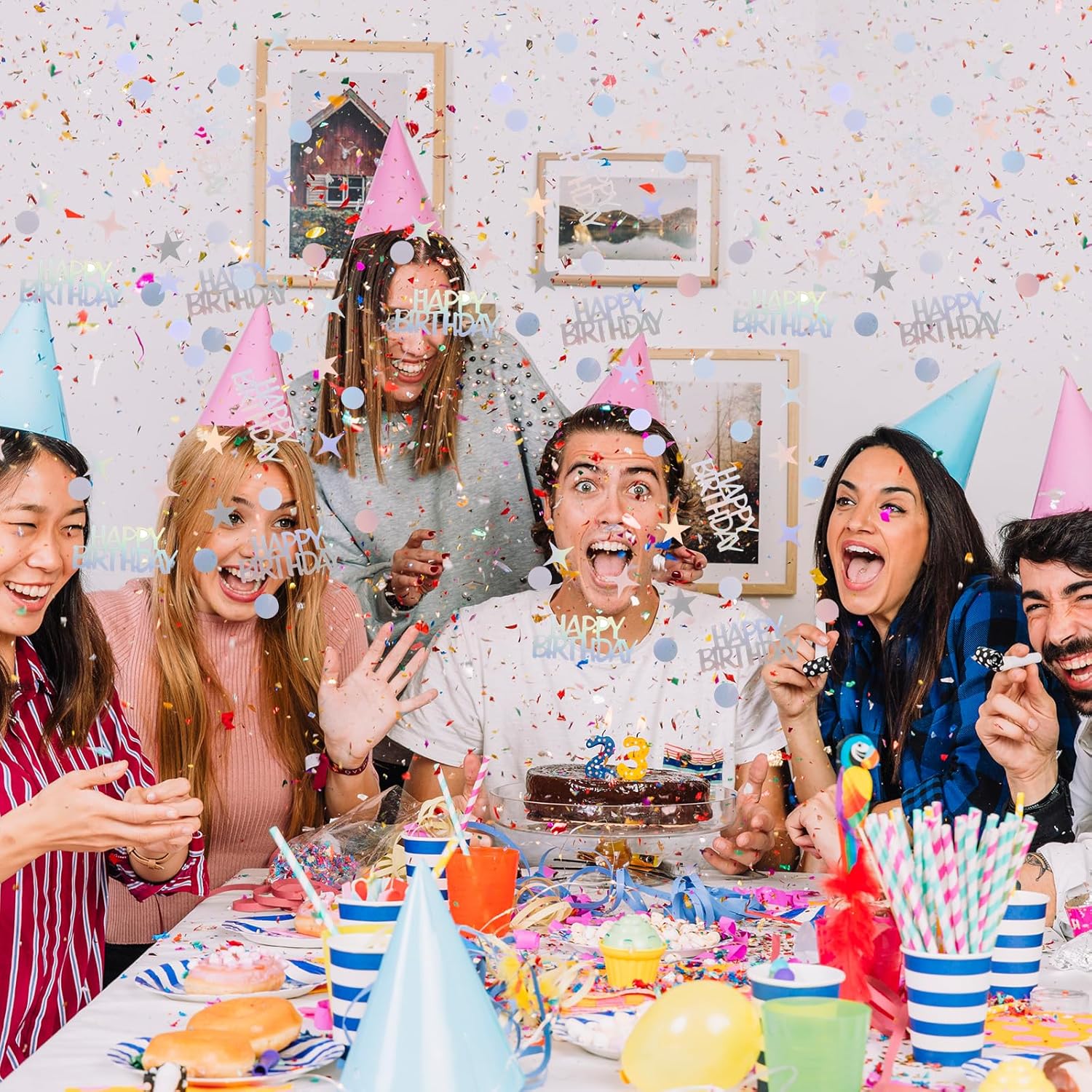 - Note: Not edible. Ensure colorful birthday confetti is kept away from young children. Contact us for any inquiries or assistance
