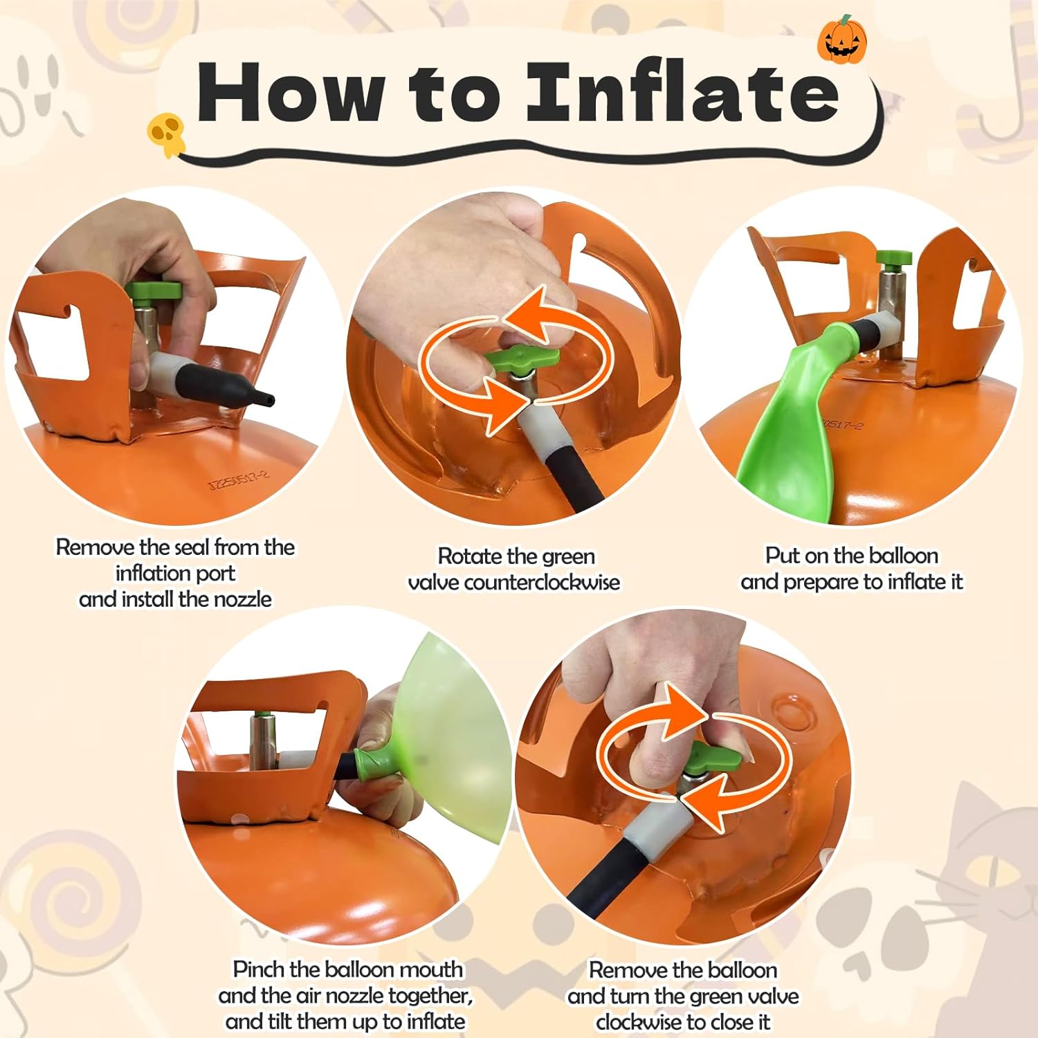 13L Helium Tank Up To 50 Latex Balloons,Helium Tank For Balloons At Home,50 12-Inch Orange&Black Latex Balloons, 5 Foil Balloons, 1Halloween 5.9X3.6Ft Backdrop, 8 Accessory Tools