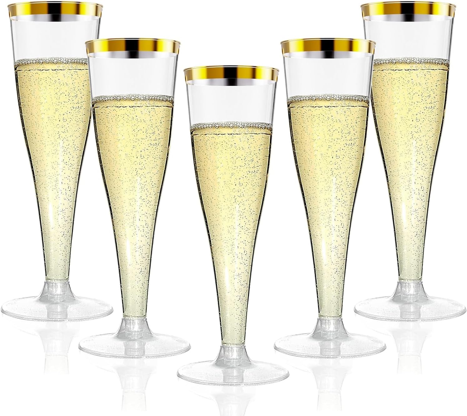 - 20 Pack Value – Includes 20 gold rim plastic champagne wine glasses (4.5oz), enough for big celebrations.