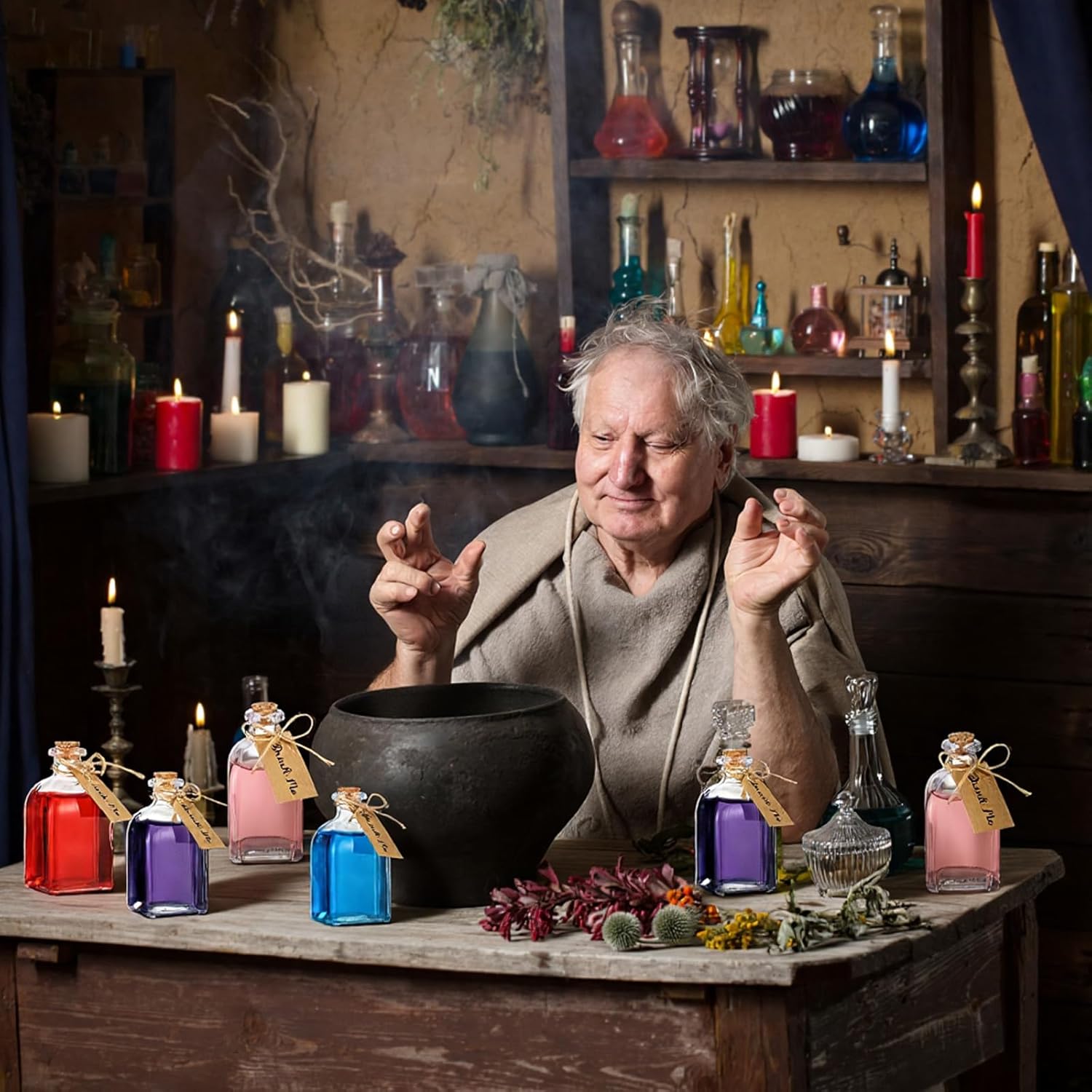 - Package Contents: this glass potion bottles set includes 18 4 oz/120 ml corked bottles, 18 "drink me" labels, and twine; The card and twine add a touch of elegance, making this a wedding, birthday, or home gift for guests