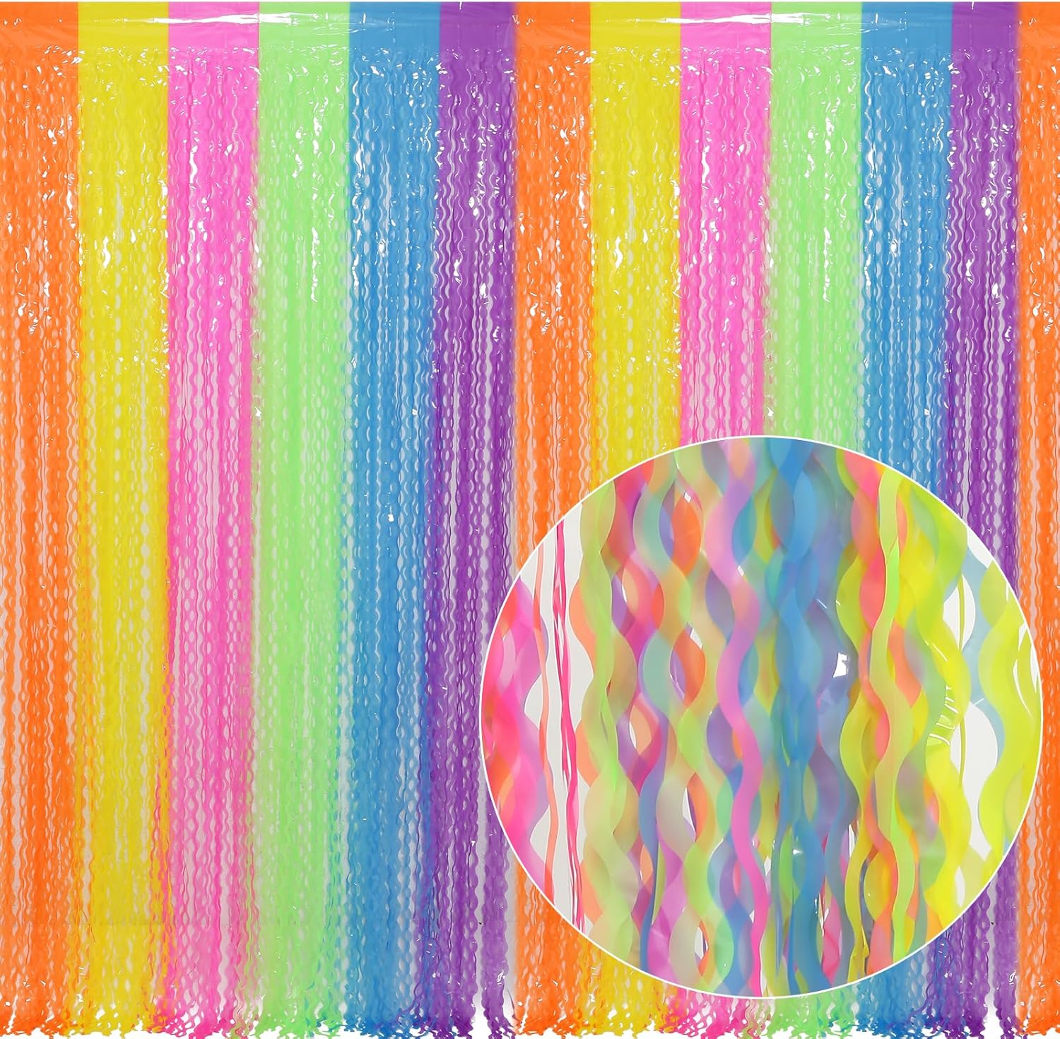 - 【LATEST Shiny Surface +Wavy Shape Tinsel Backdrop】The rainbow foil curtain backdrop is made of aluminium foil with shiny surface +wavy shape, good for adding sparkle as decorations for parties